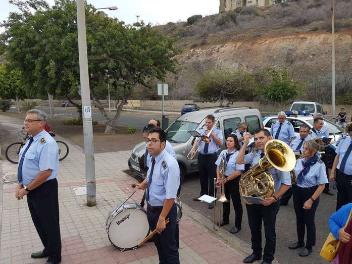 Los feligreses que arroparon el desfile religioso entonaron salmos dedicados a la Virgen, que recibió también los cánticos del joven Adrían, que posee una voz portentosa, y el acompañamiento musical de la Banda Municipal de Telde y de los ediles Abraham Santana y Saro Sosa, ambos del Gobierno de Telde.