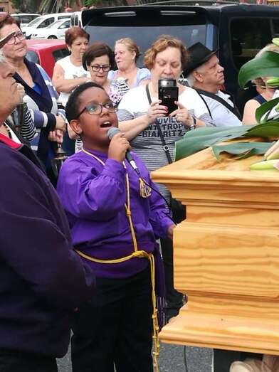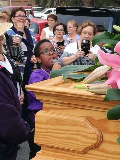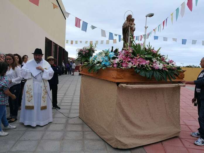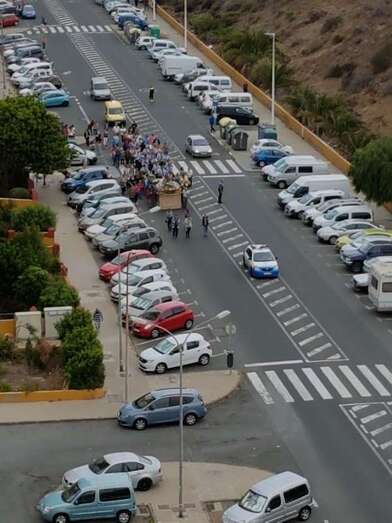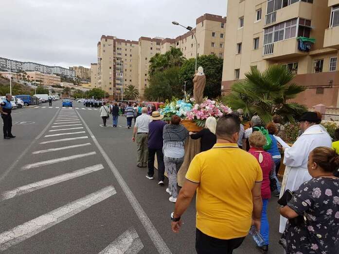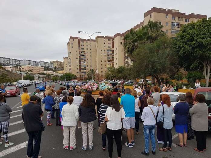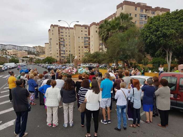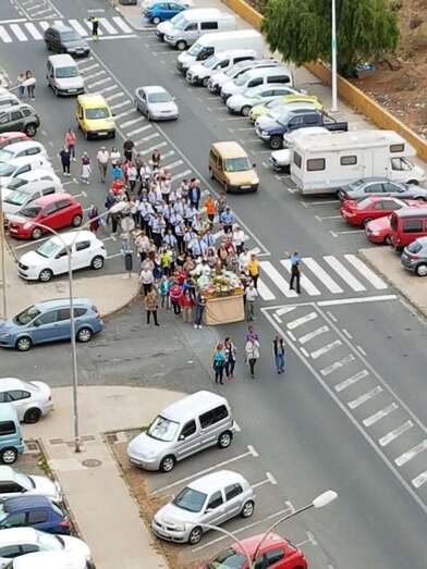 El acto, enmarcado en las fiestas de la Parroquia de San Juan Bosco, tuvo su vertiente solidaria ya que los vecinos aportaron alimentos durante el recorrido que eran recogidos por un vehículo de USE Canarias, que se encargó de llevarlos hasta el templo.