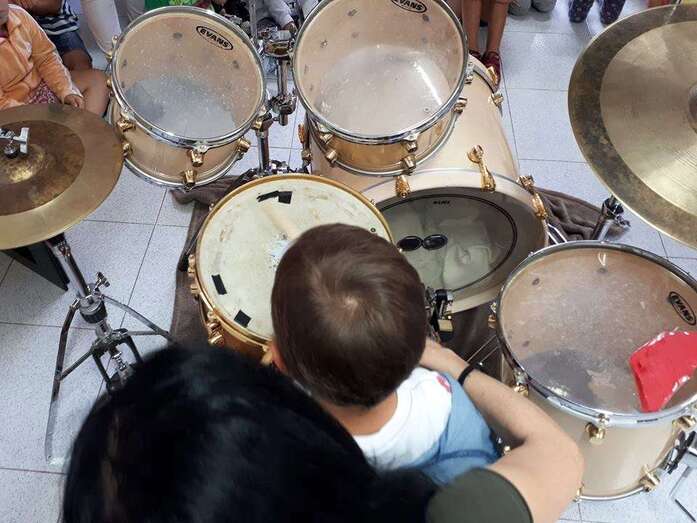 Una de sus últimos visitas, ha sido a los hogares de acogida de Aldeas Infantiles en Telde, en el barrio de La Medianía. Allí, los pequeños del centro han disfrutado de este novedoso taller empuñando con gran ilusión y entusiasmo las baquetas, y dando rienda suelta sobre los platillos, el bombo, la caja y el charles a su creatividad y oído musical. Tal es así que habrá una segunda edición, el próximo 10 de junio, sábado, aprovechando que Aldeas Infantiles celebra en Telde su Día del Socio.