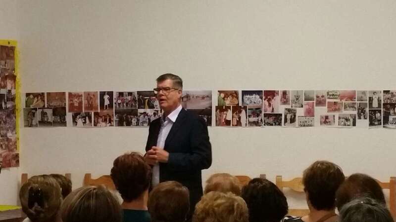 Durante más de una hora, el también licenciado en Historia del Arte por la Universidad de La Laguna ilustró al nutrido grupo de vecinos que se dio cita en el salón parroquial sobre la creación de la Parroquia de Nuestra Señora de Fátima y la construcción del tempo en su honor.