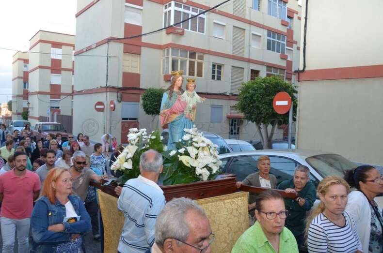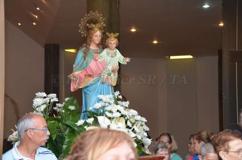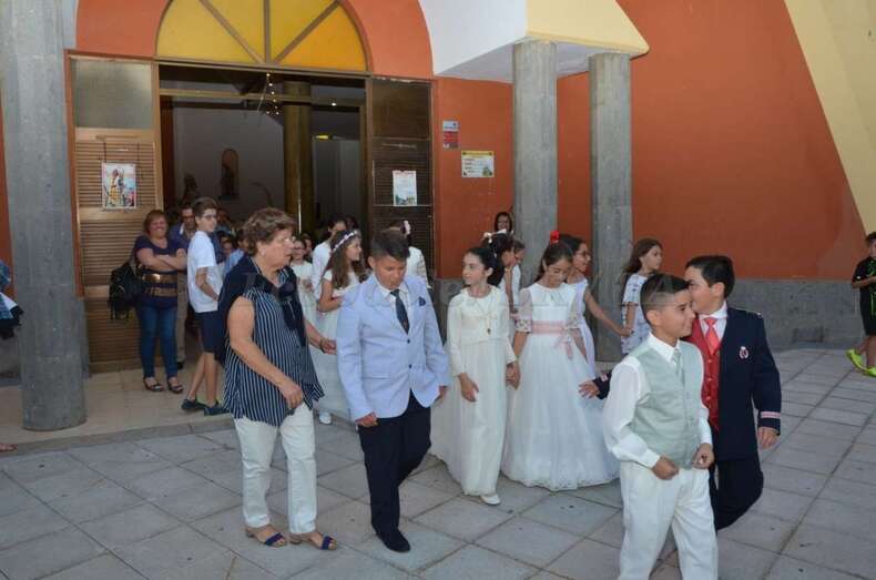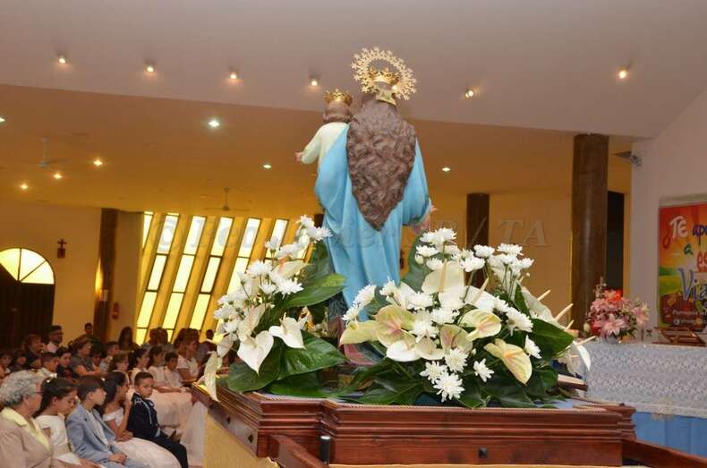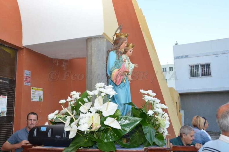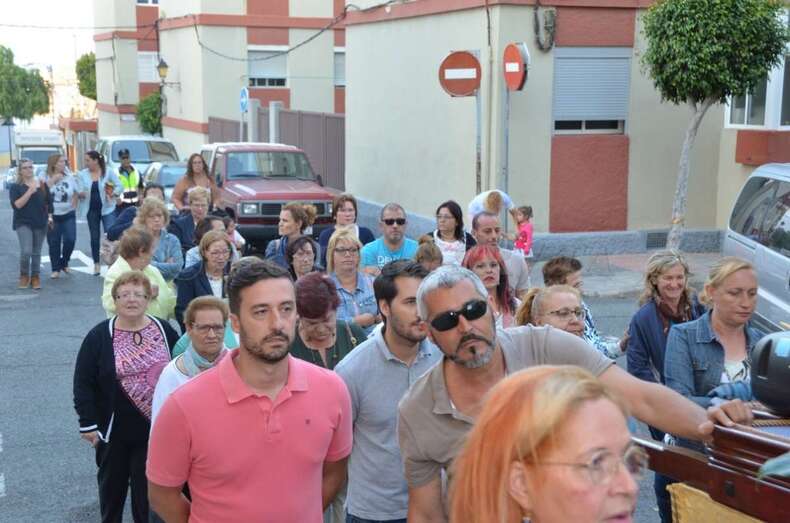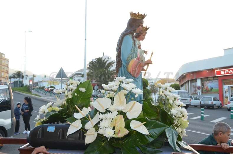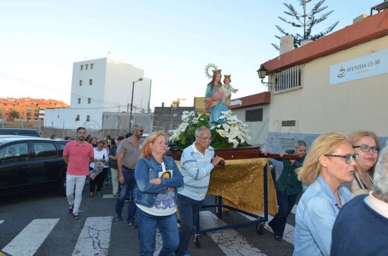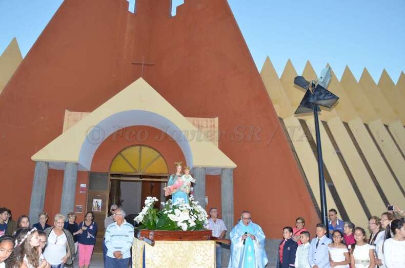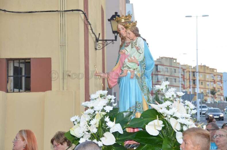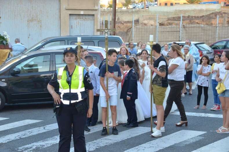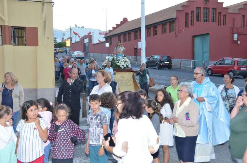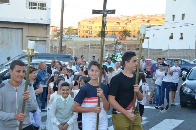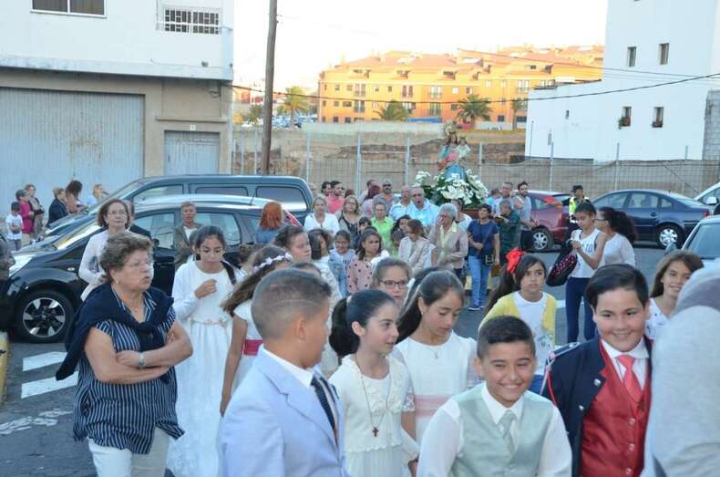 Ayer por la tarde, después de la eucaristía oficiada en el templo por el sacerdote José Antonio Valido Socorro (19.00 h oras), el trono con la talla de María Auxiliadora recorrió las calles de este popular enclave poblacional con el acompañamiento de decenas de feligreses, entre ellos niños y niñas de la parroquia que hicieron la Primera Comunición este año, y de autoridades locales como los concejales Saro Sosa y Juan Antonio Peña.