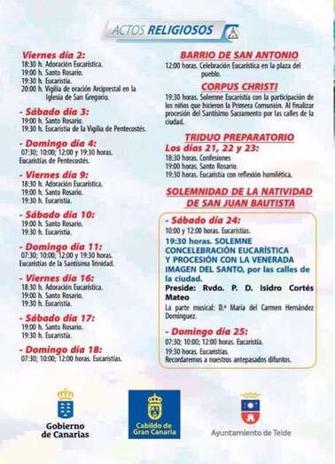 A partir de ahí, hasta el domingo 25 de junio, el programa de actos ofrece un amplio abanico de eventos lúdicos, deportivos y religiosos.