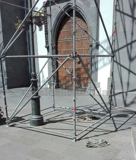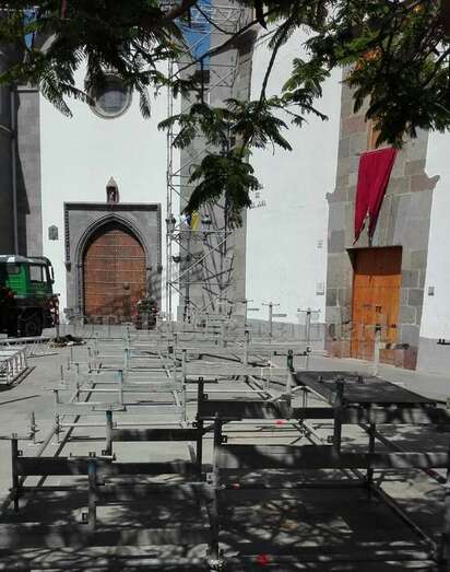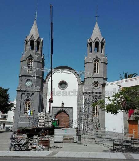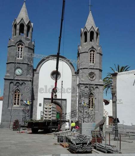 Telde.- “Una aberración”. Este ha sido el término empleado por el cronista oficial de la ciudad, Antonio María González Padrón, para calificar la colocación de estructuras metálicas en la plaza de San Juan, delante de la fachada principal de la Basílica, para el montaje de la obra teatral de la Noche de San Juan.