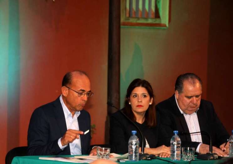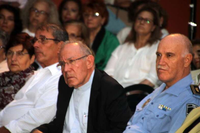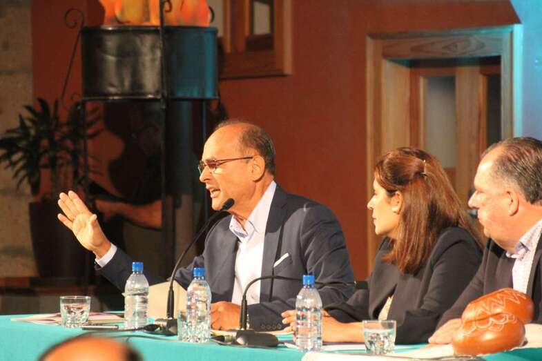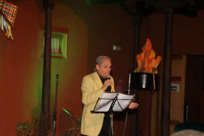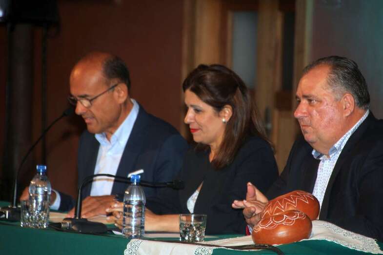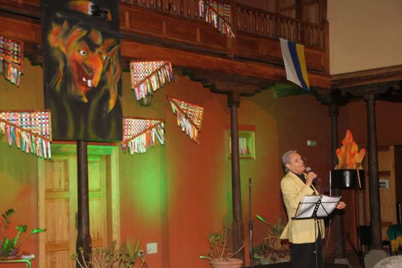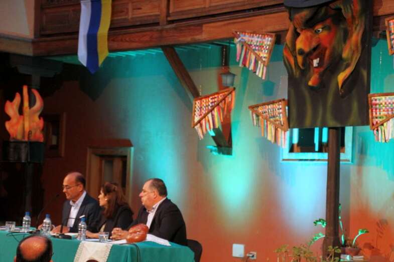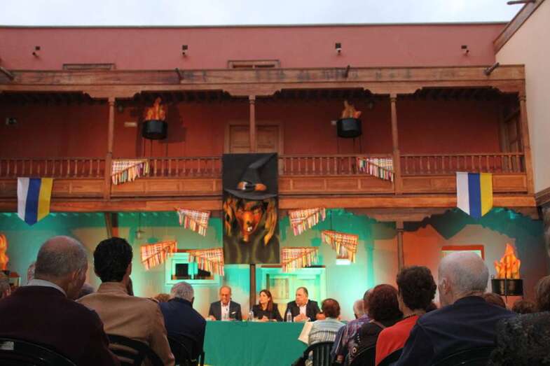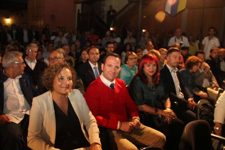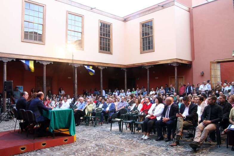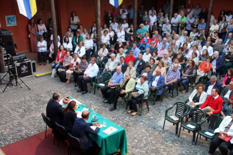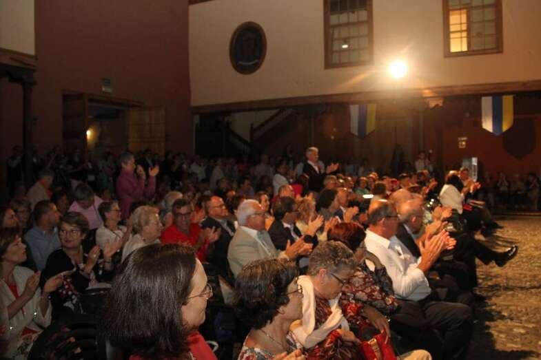 El pregonero Julio Pérez, poeta, escritor, narrador, verseador de la décima, un teldense de pro que días antes hablamos del fondo de la cuestión y trasfondo del pregón y, seguro, como así fue, nos deleitó, emocionó y nos llenó de recuerdos. Julio maestro en el ejercicio de transmitir o comunicar, expresa en su profunda y exquisita sensibilidad su oratoria serena, segura, documentada, lírica, de poética personal por excelencia, y poniendo voz a los versos de otros poetas, didáctica y a la vez, versátil y bien verseada. Expresión sosegada no exenta de apuntes irónicos, o del sentido del humor que asoma, como buen canario, con cierto rictus socarrón, pero guiados siempre con el aliento y fuerza del latido intelectual de su sabiduría, grande de corazón, con la sensibilidad ética de las formas místicas del pensamiento, creación y reflexión ecuánime de la reivindicación de las importantes obras civiles por terminar, rehabilitar y conservar.