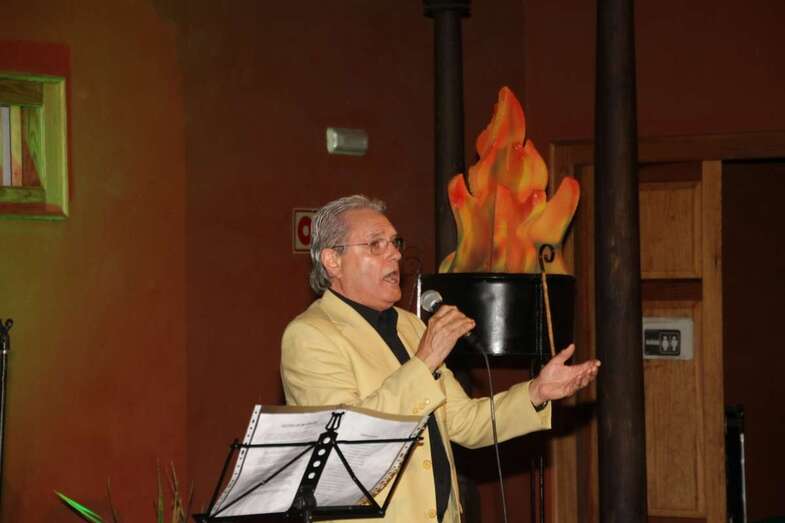 Pregón para traer de los que ya marcharon, el buen recuerdo,/ para señalar el surco que en el cercado nos dejaron,/ pregón para agradecer el legado de la sangre, mente y corazón,/ pregón para seguir la senda que el destino nos tiene guardado./ La sonrisa del que ejerce la gracia de regalar la vital herencia,/ traernos aquel pequeño mundo, en un corto relato, toda una vida,/ padre voy a buscar mi senda por tus consejos y gracia bendecida,/ madre gracias por tu celo, por acoger en tu regazo mi frágil existencia./ Seguirán estaciones, el paisaje cambiará la piel, el mar su marea,/ los vientos su eterno viaje por los perdidos y etéreos lugares,/ errante el planeta su cósmica aventura entre destellos estelares,/ pero, el hombre atado a la tierra, escribirá la historia que desea./ (del poema El Pregón, del autor del reportaje).