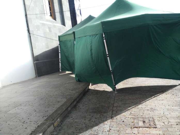 Lonas desgajadas y estructuras movidas que ahora se tendrán que apañar para que mañana, a eso de las 12.00 horas, todo esté listo para la actuación del grupo folclórico El Gran Faycán, servirá como arranque de la muestra.
