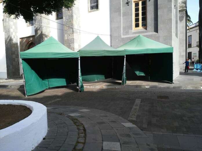 El concejal de Festejos, Juan Martel, le ha quitado hierro al asunto y ha señalado que el viento no ha provocado daños de consideración al montaje y que mañana las casetas estarán en condiciones de albergar la muestra artesanal.
