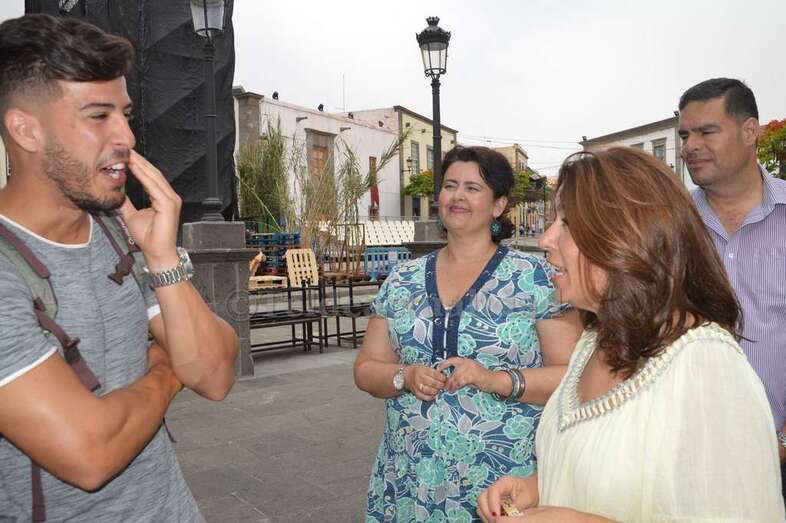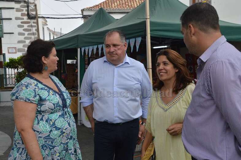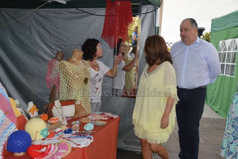 La alcaldesa, Carmen Hernández, el concejal de Festejos, Juan Martel, y los ediles Celeste López y Diego Ojeda inauguraron este viernes la muestra en la que participan artesanos llegados desde diversos municipios de Gran Canaria y Tenerife. Oficios como el ganchillo, el patchwork, el cuero, la muñequería o la elaboración de miniaturas, entre otros.