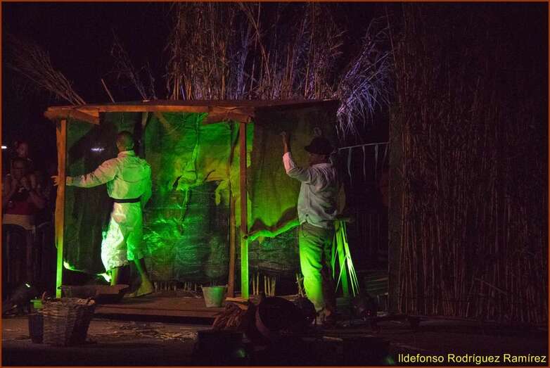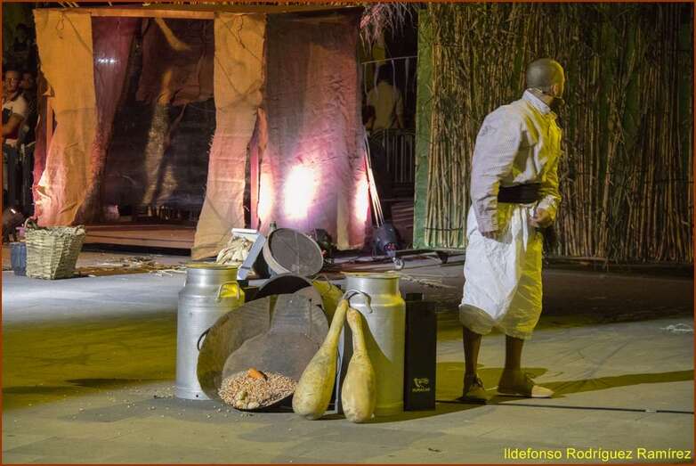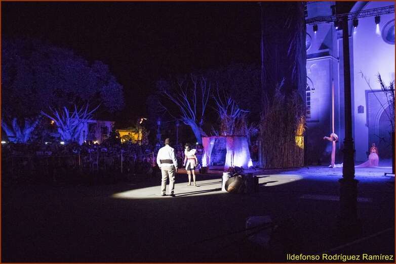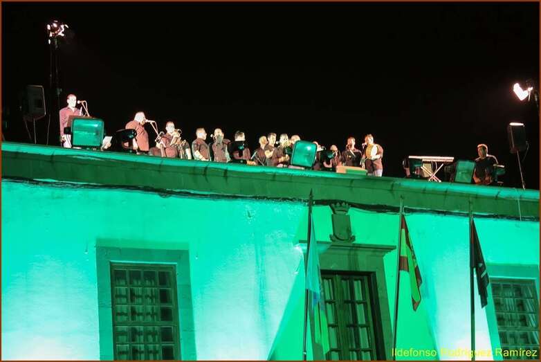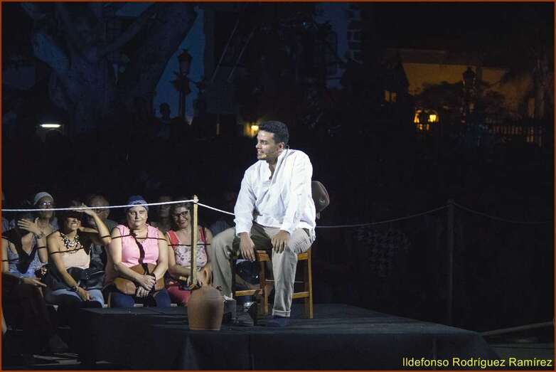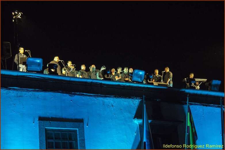 Según publica Canarias7, la obra contó además con la música en directo de la Parranda Araguaney, que hizo de coro y puso la banda sonora al espectáculo, encaramada a la azotea de las Oficinas Municipales.