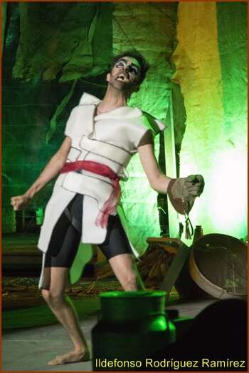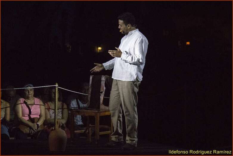 Telde.- Juan el Bucio, aunque sin pretenderlo, guió anoche en la plaza de San juan a los asistentes al espectáculo Historia de un cuarto de aperos por ese universo mágico de las leyendas y los mitos de brujas que durante siglos han marcado el devenir de Telde.