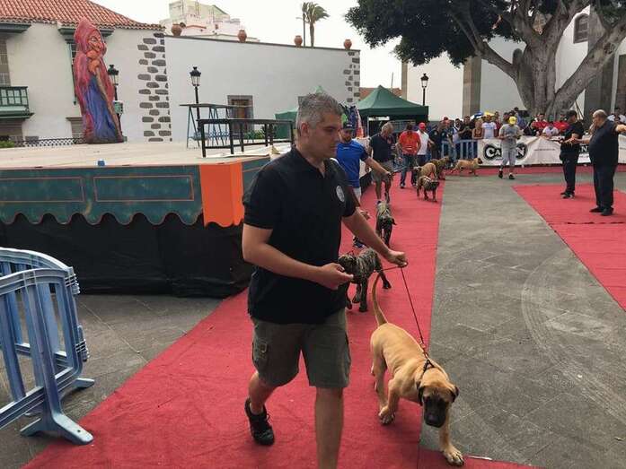 Telde.- Domingo de perros en el casco histórico de Telde. La plaza de San Juan acogió a partir de las 10.00 horas un concurso nacional canino de dogo presa canario, enmarcado en el programa festivo de las patronales de la ciudad.