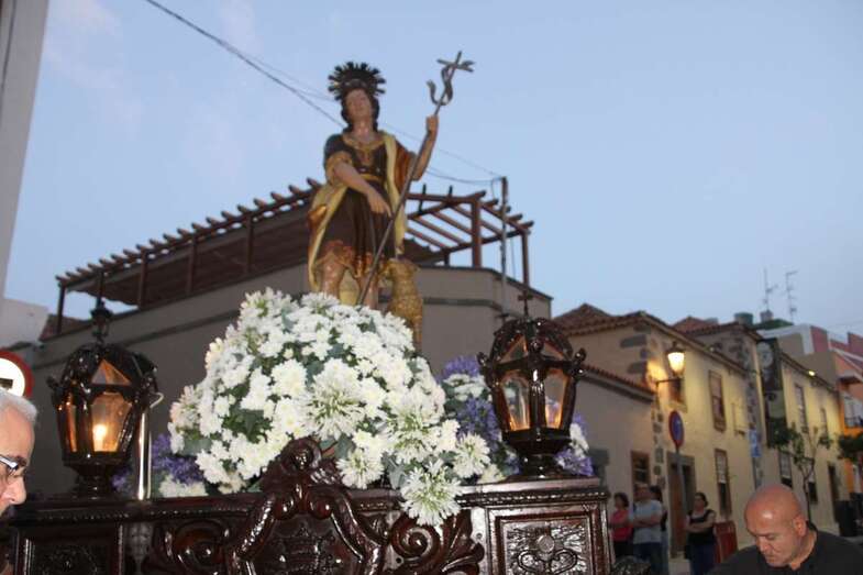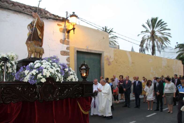 La altas temperaturas predominantes en este 24 de junio de 2017 ha reducido las posibilidades de encender hogueras por la propia seguridad de la población y conservación de la naturaleza, pero San Juan, la imagen en su trono ha presidido la procesión que como colofón de los actos religiosos después de la solemne celebración eucarística, ha discurrido por el casco histórico artístico del barrio fundacional de San Juan. De regreso al templo después de las despedidas de autoridades, el párroco Don José María Cabrera Pérez, agradeció la asistencia a los actos eucarísticos, litúrgicos y a esta procesión en el día de la solemnidad de la Natividad de San Juan Bautista, impartiendo la bendición, y con un ¡Viva San Juan Bautista! elevó los brazos al cielo deseando todo lo mejor para el pueblo teldense y visitantes, ante el santo y el impresionante retablo gótico-flamenco del Altar Mayor que preside desde su hornacina el Santísimo Cristo de Telde, venerado históricamente por la ciudadanía de esta ciudad.