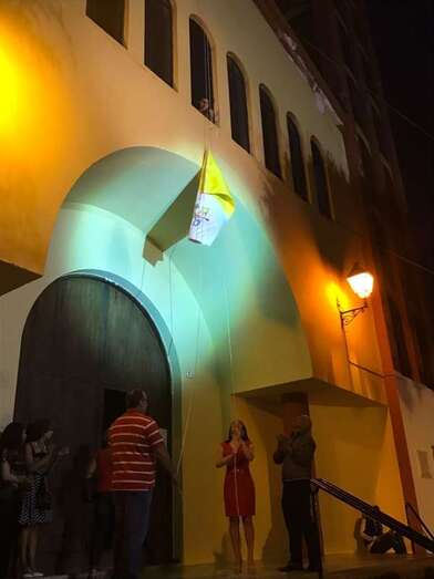 Personajes del barrio como el histórico e ilustre luchador teldense, José Rodríguez Franco, apodado El Faro de Maspalomas, natural de El Ejido, fueron evocados también por la pregonera en su tramo final del texto que leyó en la plaza pública, donde después se procedería al izado de la bandera en el frontispicio del templo.