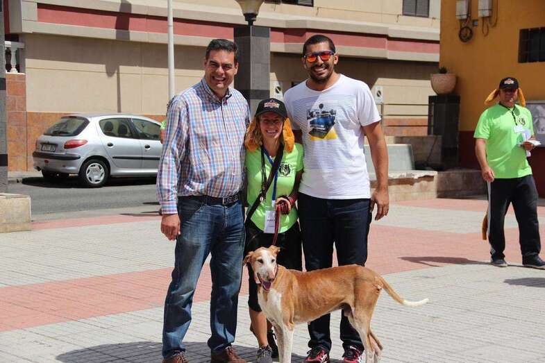 Desde el Ayuntamiento de Telde, los concejales Diego Ojeda y Abraham Santana quisieron sumarse a esta jornada y arropar a AuriCan en su búsqueda de fondos para hacer realidad su tan ansiada residencia para podencos.