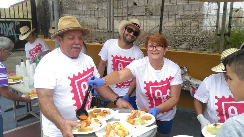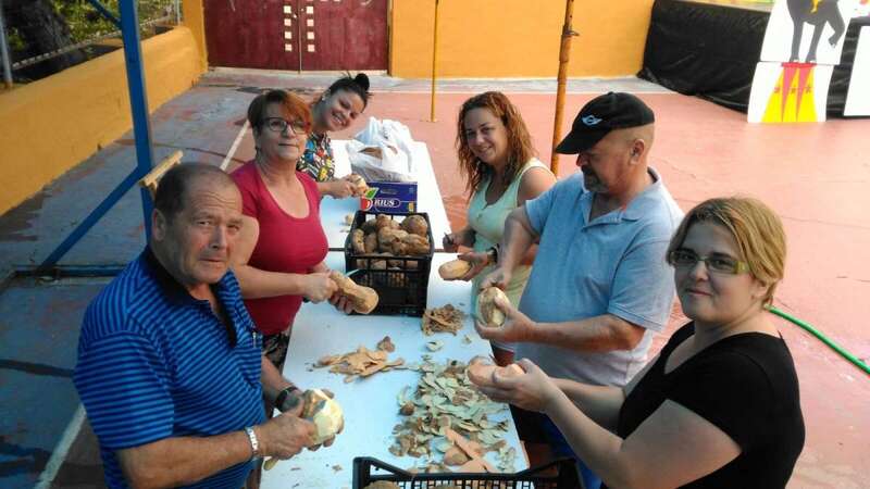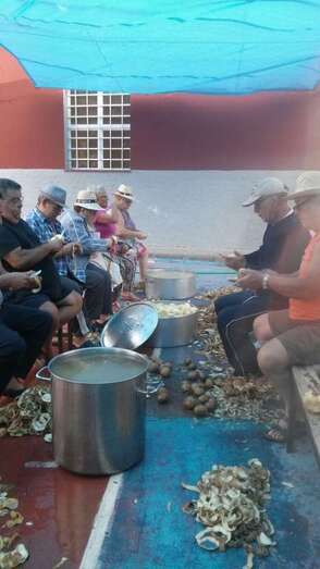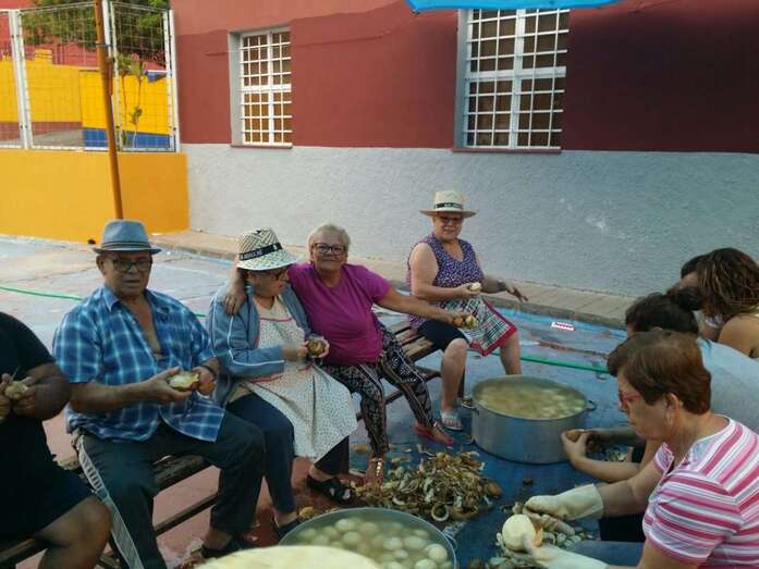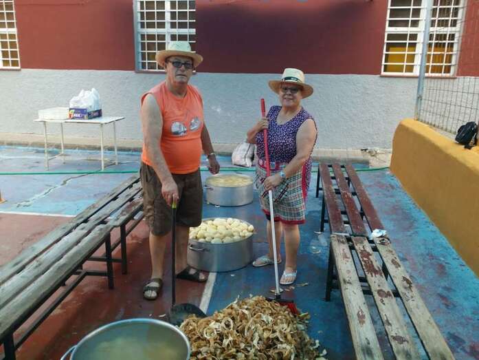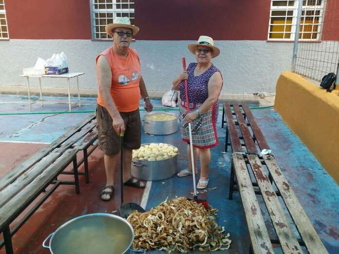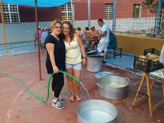 Un nutrido grupo de vecinos se puso mano a la obra desde las 7 de la mañana para preparar en grandes calderos el manjar que se repartiría entre los asistentes a la fiesta a partir de las 14.00 horas.