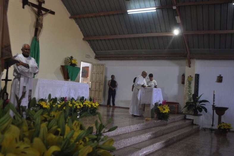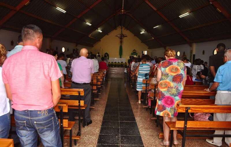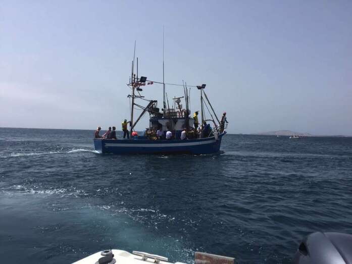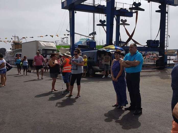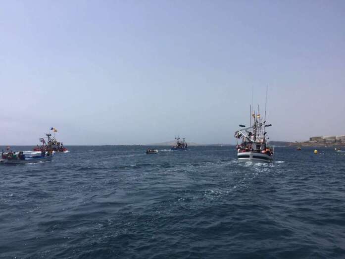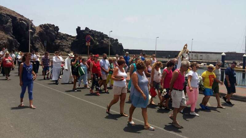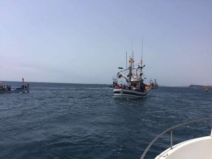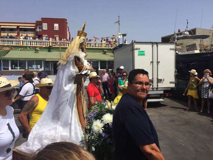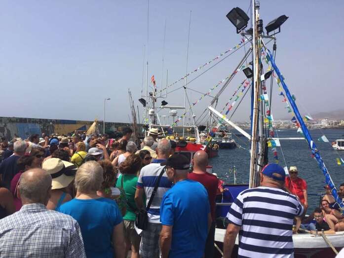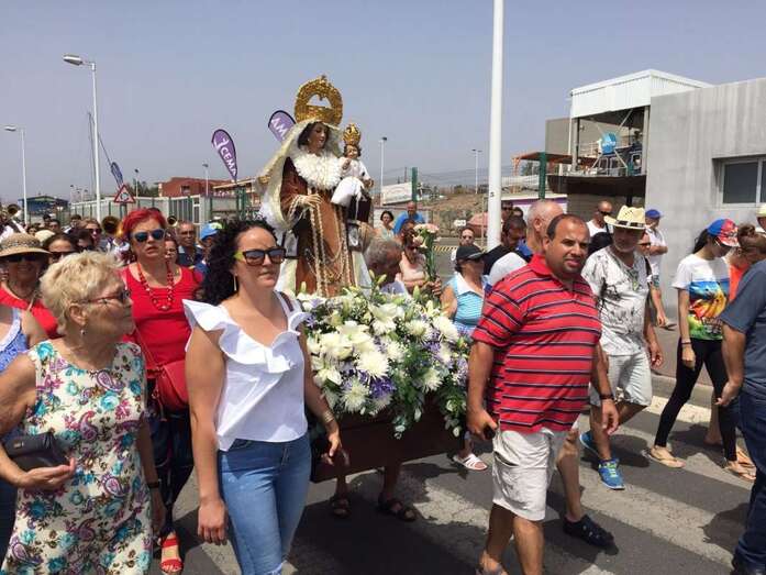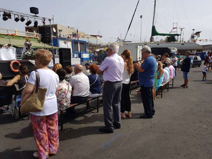 El calor asfixiante fue la tónica dominante, aunque no impidió que la gente acudiera a saludar y a acompañar a la patrona de los marineros, primero en la eucaristía que se ofició en la explanada interior del puerto de Taliarte y luego durante la procesión marítima.