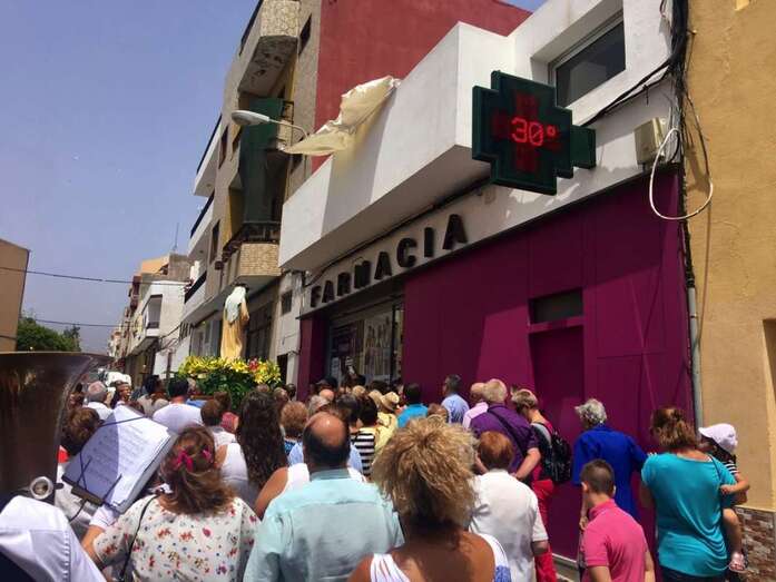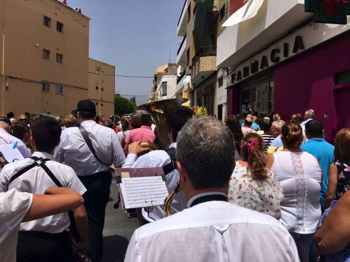 Las Huesas fue otro de los barrios que hoy rindió pleitesía a la Virgen del Carmen. Los vecinos se echaron a la calle para llevar a la efigie religiosa a recorrer sus calles principales en una procesión que también se desarrolló bajo un sol de justicia.