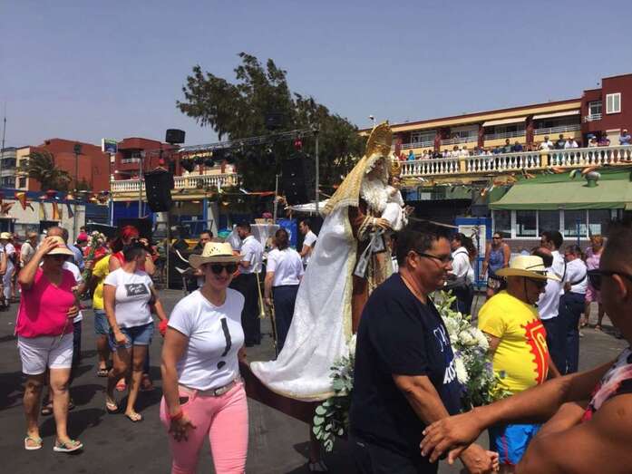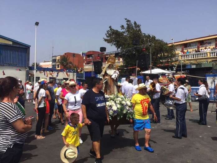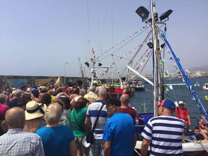 Fue este último el acto que más emoción despertó. Pasado el mediodía, miembros de la comisión de fiestas que preside Carmen Rosa Santana y vecinos de la zona cargaron con las andas y acercaron la imagen religiosa hasta el muelle para embarcarla en uno de los barcos de la Cofradía de Pescadores de Melenara. Embarcación a bordo de la cual surcaría las aguas de la bahía hasta llegar a Salinetas para luego dar la vuelta y regresar a Taliarte, en medio del jolgorio y arropada en todo momento por decenas de personas que la siguieron desde otros navíos.