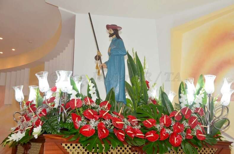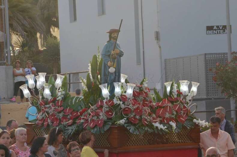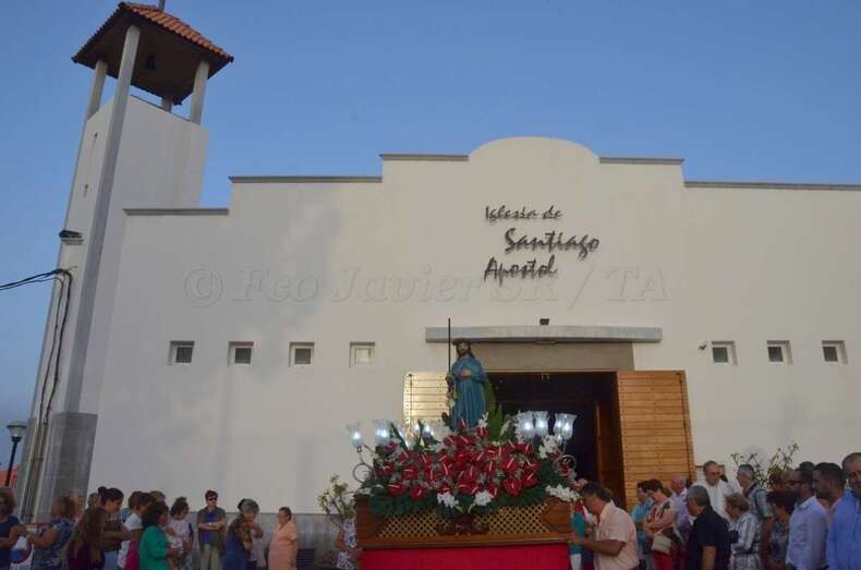 El desfile religioso, que contó con la presencia de varios ediles del Ayuntamiento teldense, enfiló las puertas del templo bajo la advocación de Santiago Apóstol tras la eucaristía celebrada a las 19.00 horas.