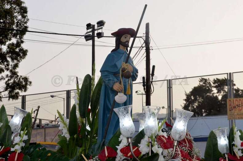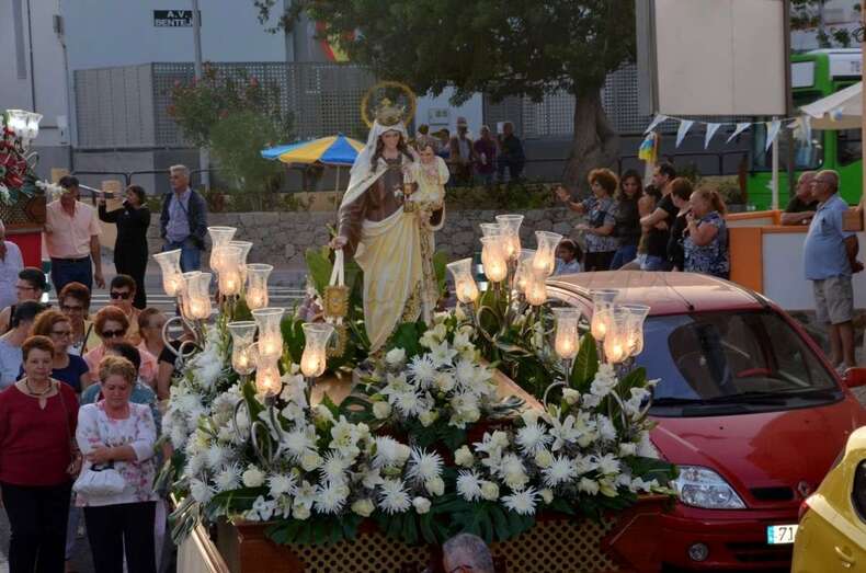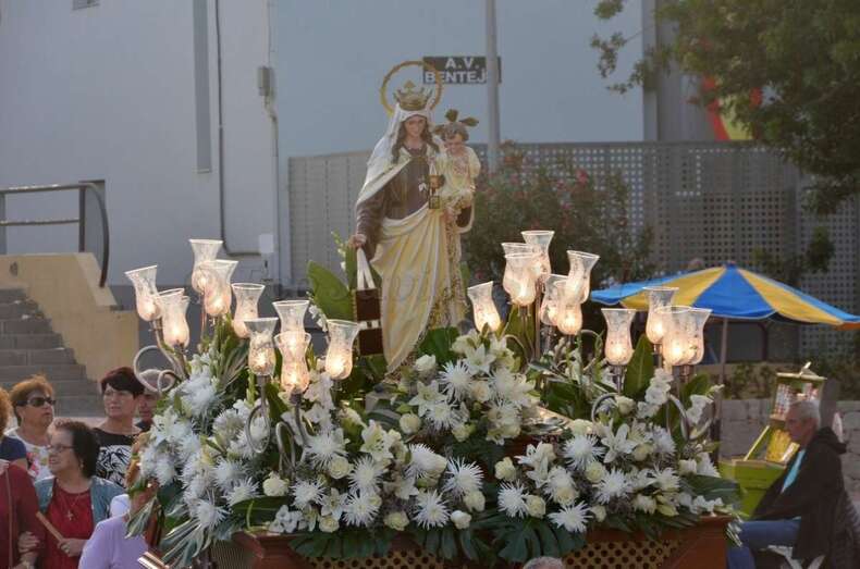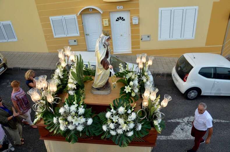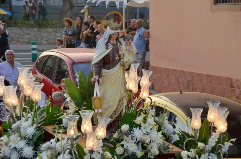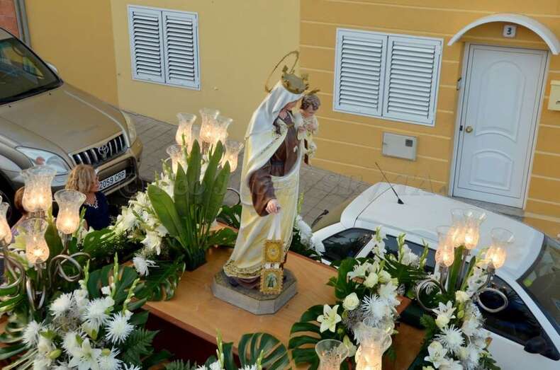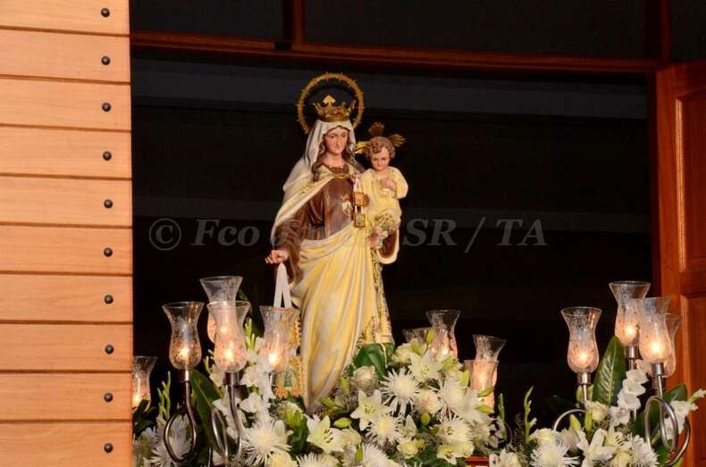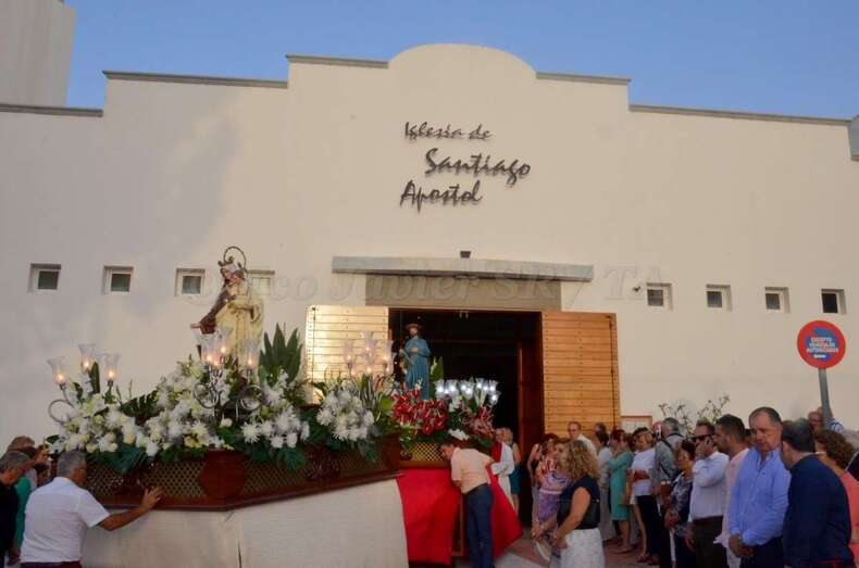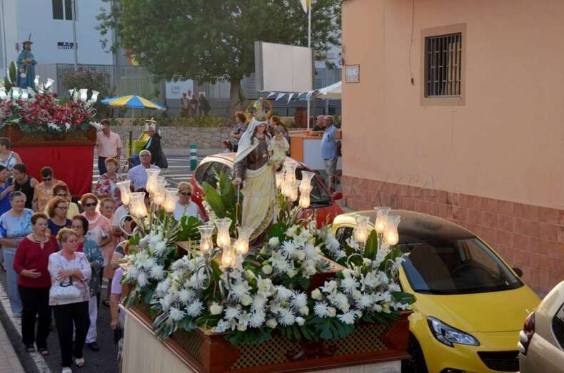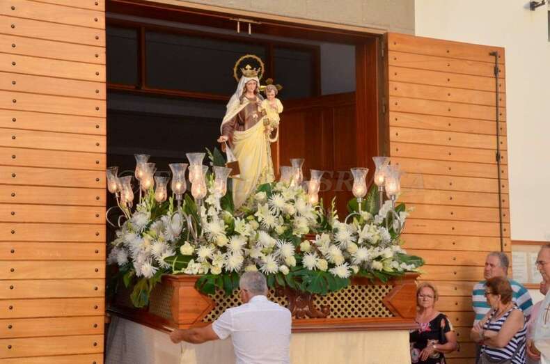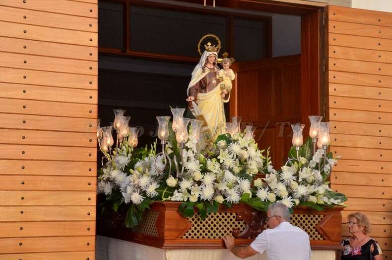 Telde.- Lomo Cementerio procesionó martes a sus santos patronos la Virgen del Carmen y Santiago Apóstol por las calles del barrio después de la misa oficiada en el templo por el rector del Seminario Diocesano, Salvador Santana, y el párroco de la zona, José Ramírez González.