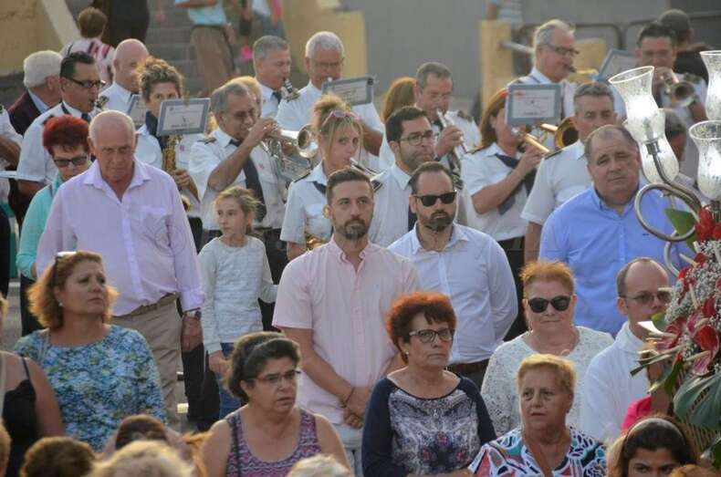 En su periplo por las principales calles de Lomo Cementerio los tronos de los patronos estuvieron acompañados por un nutrido grupo de feligreses y de la Banda Municipal de Música.