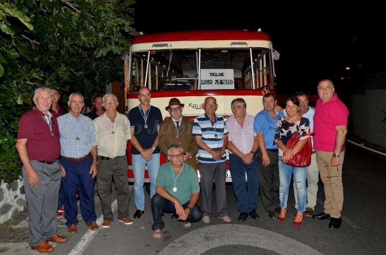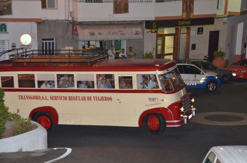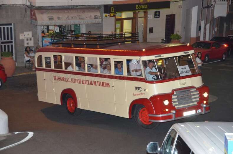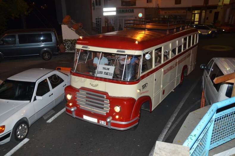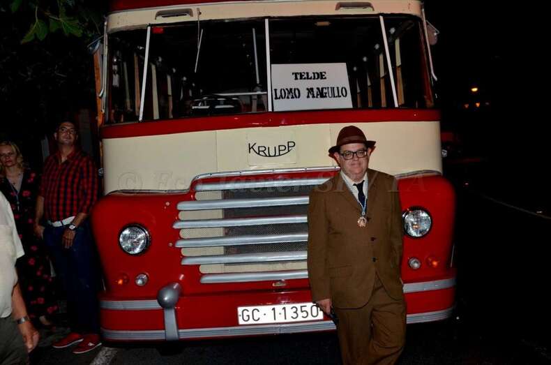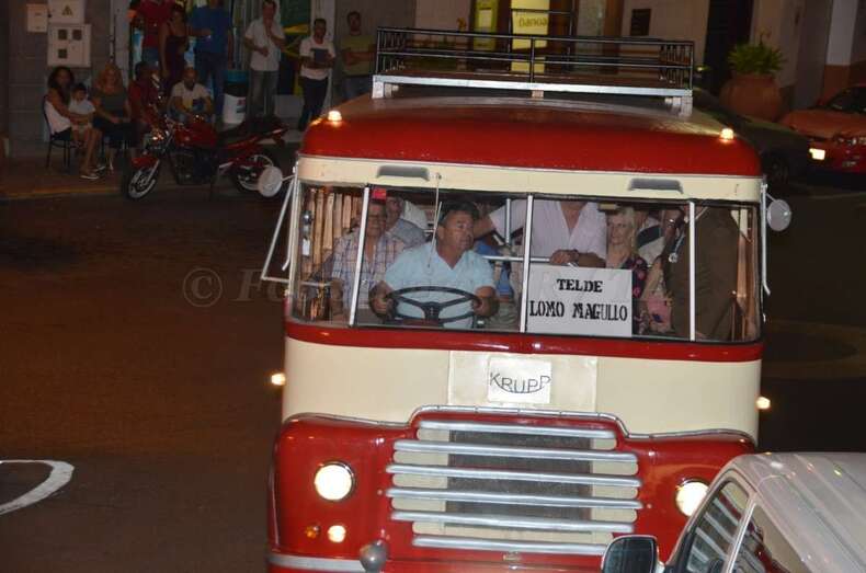 Sin embargo, el viejo y remozado vehículo no llegó hasta el casco de Lomo Magullo hasta las 22.45 horas (estaba previsto que lo hiciera a las 21.00 horas), lo que dio pie a que el pregón se prolongara hasta pasada la medianoche para desesperación del público que abarrotaba la plaza, entretenido con monólogos por un grupo teatral de Lomo Magullo.
