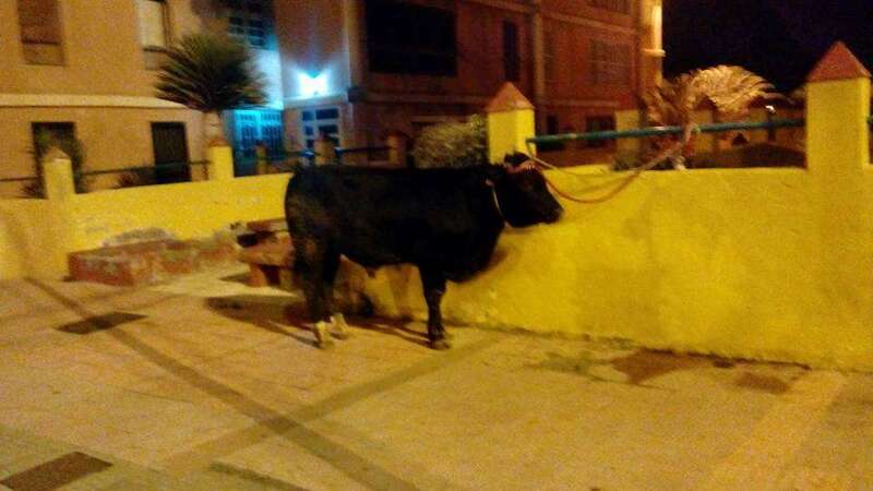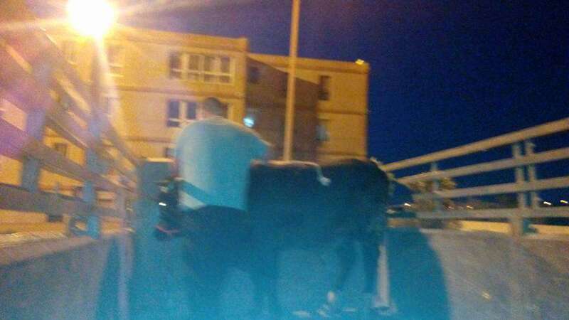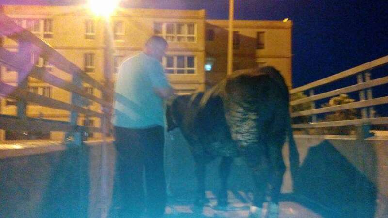 Los vecinos que alertaron al 112 no salían de su asombro. En el lugar se personaron dos coches patrulla de la policía local y otros tantos de la nacional, requirieron los servicios de un conocido veterinario, Antonio que tuvo que madrugar más de lo común para, con su equipo, intentar primero atar al becerro en algún lugar y así proceder a transportarlo hasta su granja que resultó ser, según averiguaron con su placa de identificación, pertenecía a una granja cercana ubicada en Hornos del Rey.