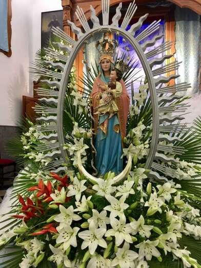 Telde.- La Virgen de Las Nieves está ya más cerca de sus feligreses de Lomo Magullo. Anoche tuvo lugar la Bajada de la venerada imagen desde el altar al trono.