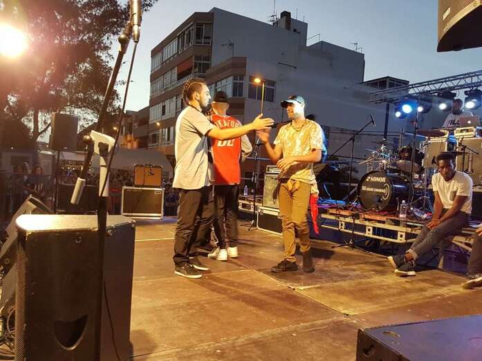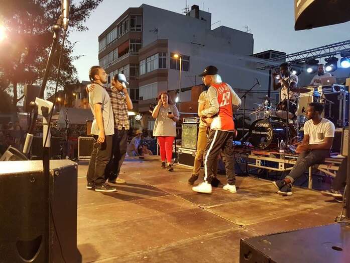 A las 19.00 horas arrancaron los espectáculos musicales con la actuación de Aniba, un joven rapero grancanario; seguido de Enkassette, grupo de rock compuesto por jóvenes de Telde, que participóa las 21.00 horas.
