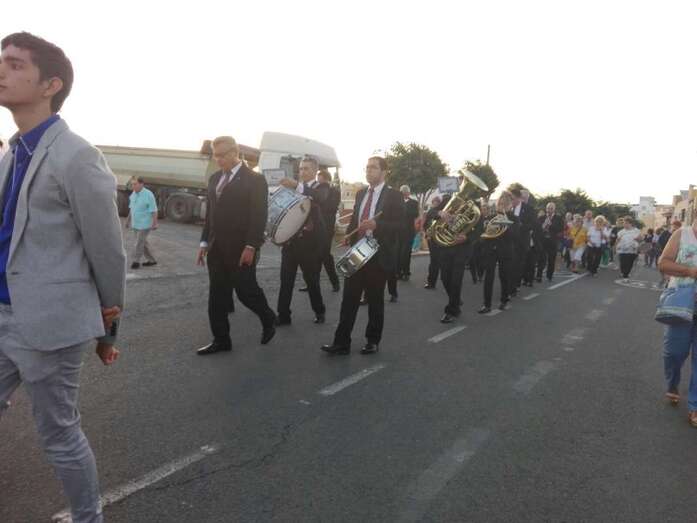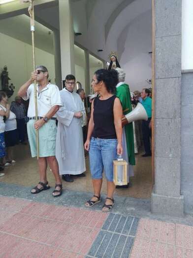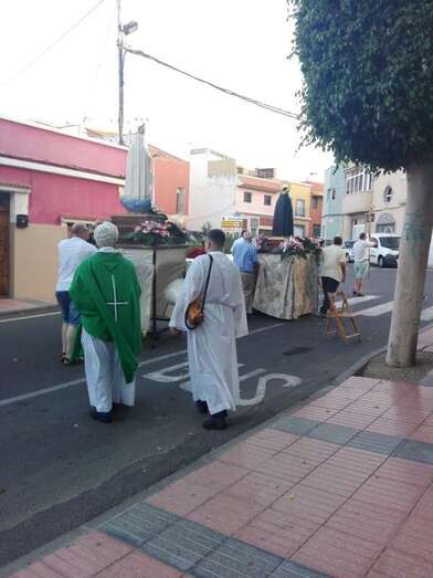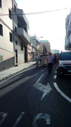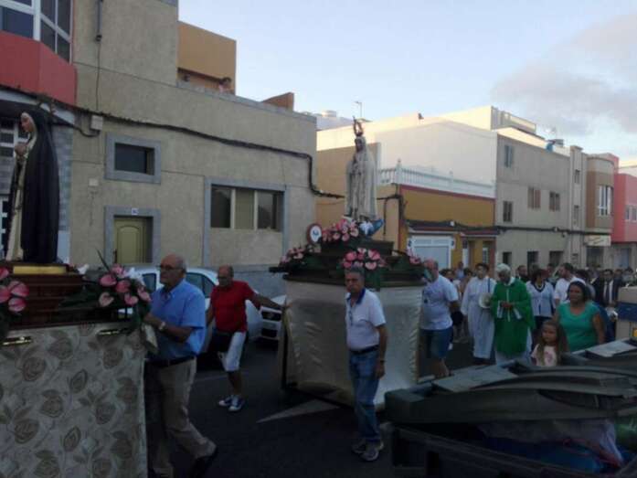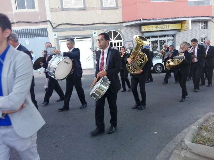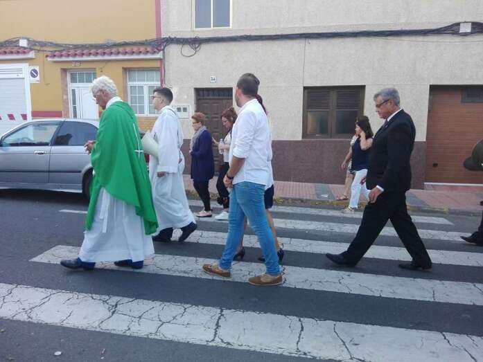 Allí, media hora después, tenía lugar una misa cantada con aires canarios interpretado por la Agrupación Folclórica Tagoror y después el desfile religioso de ambas imágenes hasta La Viña, donde la antigua talla permanecerá unos días. El recorrido estuvo acompañado por la Banda Municipal de Música de Telde. Asistió también la concejala de Participación Ciudadana, Saro Sosa.