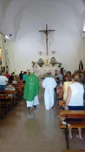 A las 19.00 horas, el trono de la Virgen de la Paloma salió de La Viña en dirección hacia el templo bajo la advocación de la Virgen de Fátima, con el acompañamiento de un pequeño grupo de feligreses.