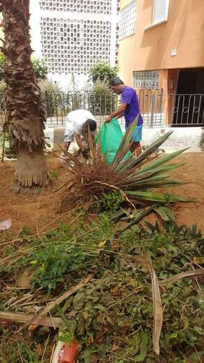 Telde.- Un grupo de vecinos de Las Remudas se han organizado para llevar a cabo ellos mismos una poda y limpieza de las zonas ajardinadas que se encuentran a los pies de los bloques de viviendas de promoción pública.