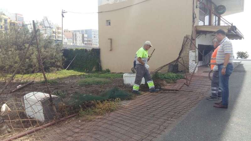 Según publica Canarias7, pese a que el solar es de propiedad privada, el edil accidental del área, Diego Ojeda, dio órdenes a los trabajadores municipales para que se reparase esta verja muy oxidada.