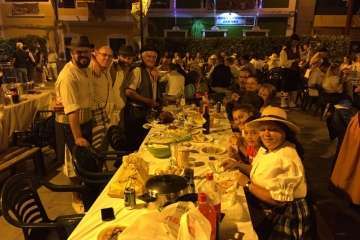 Un grupo de fieles sorprendió al sacerdote pertrechados con vestimenta amarilla, color habitual de sus camisetas y gorra, y un enyesque, muestras de cariño que el Padre Báez agradeció muy emocionado.