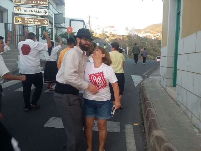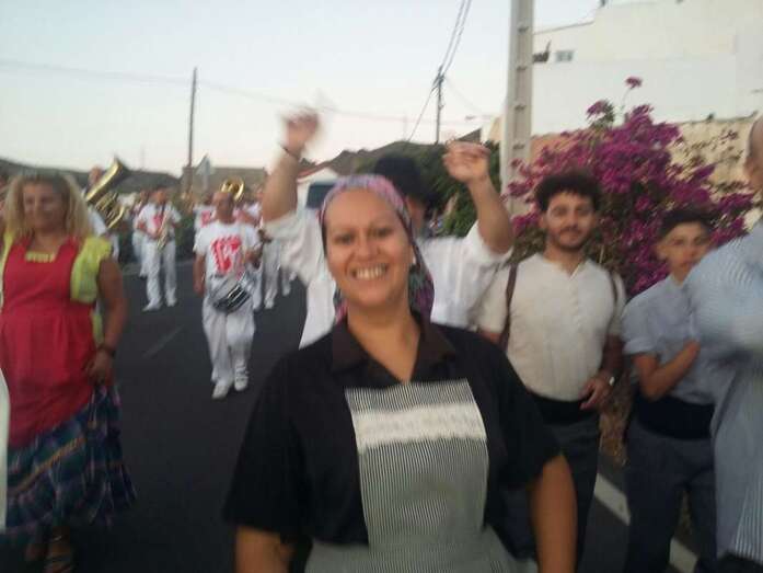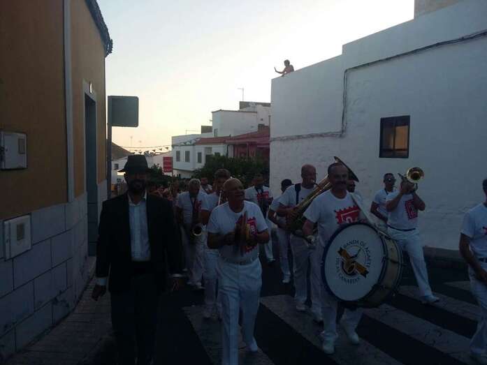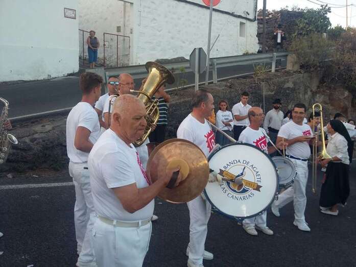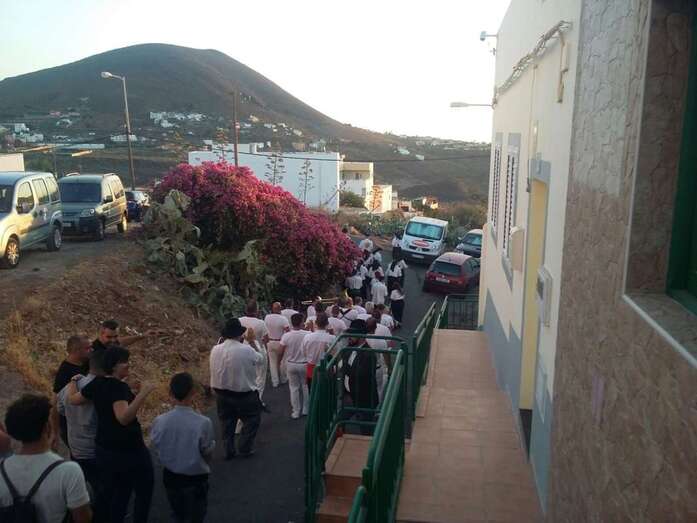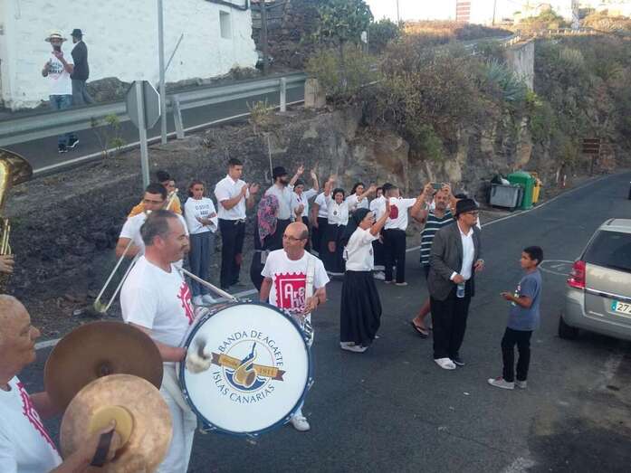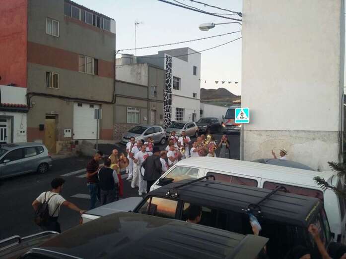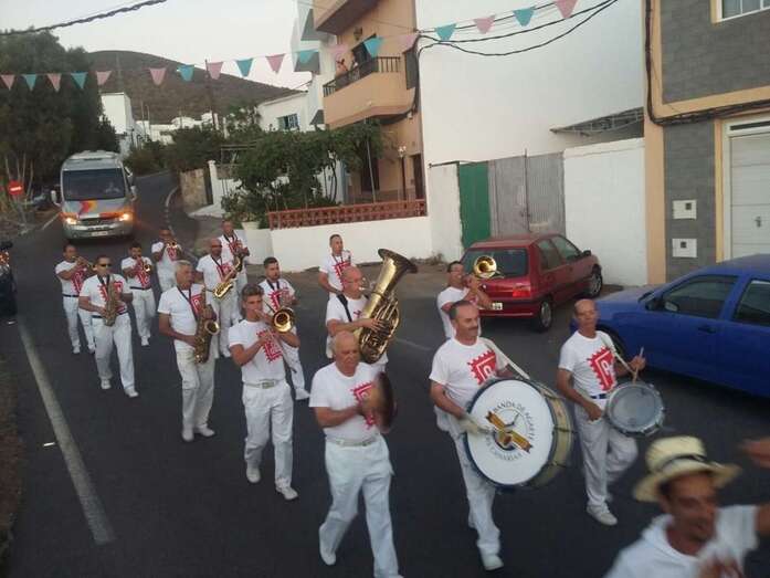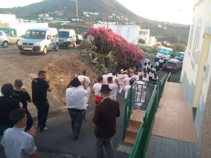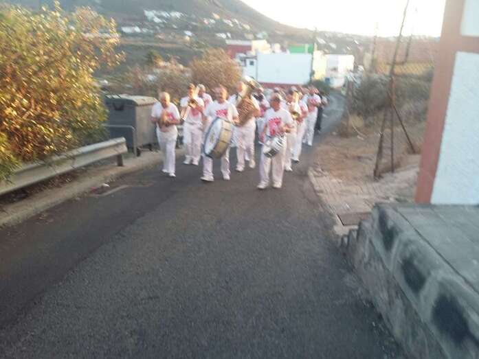 Muchos lugareños saludaron el paso de la banda desde azoteas y ventanas y otros se incorporaron de inmediato a la alegre comitiva vestidos ya con atuendos típicos canarios, preparados ya festejar para la Traída del Agua en un día que se prevé caluroso, con registros térmicos que pueden incluso superar los 25 grados. En el momento de redactar esta información, la temperatura ambiental en Lomo Magullo es de 20 grados, según informó desde el lugar a TELDEACTUALIDAD Jonay López Montesdeoca.