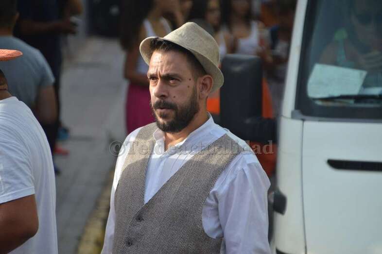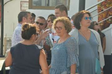 Crespones negros en dos banderas de la comitiva popular simbolizaban el recuerdo de Melenara a las víctimas de la barbarie terrorista de días atrás en Cataluña.
