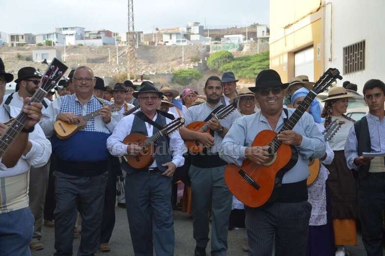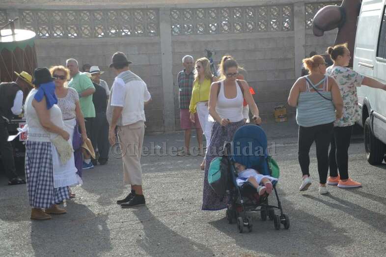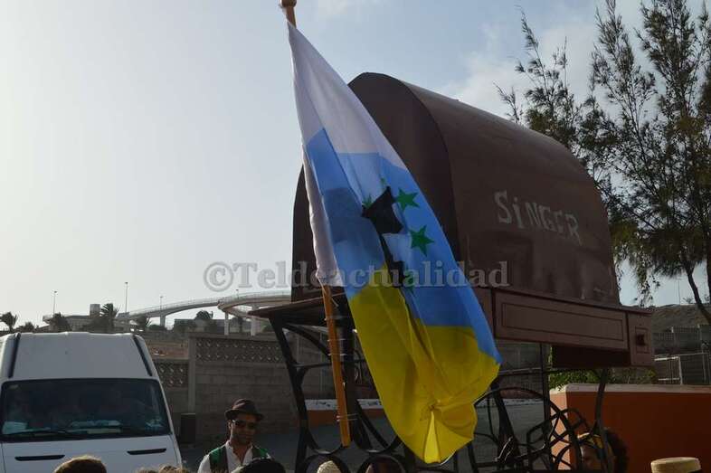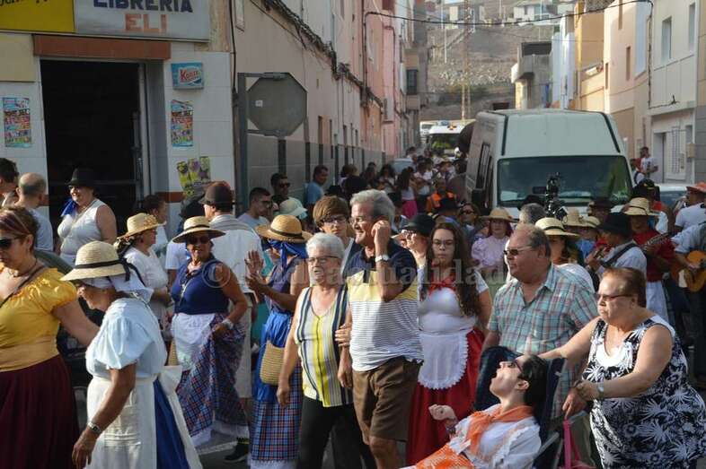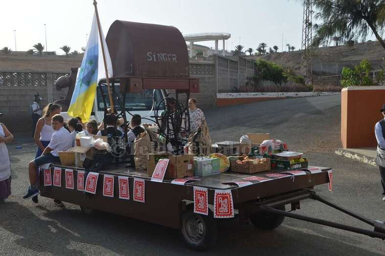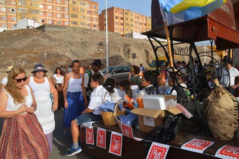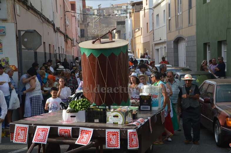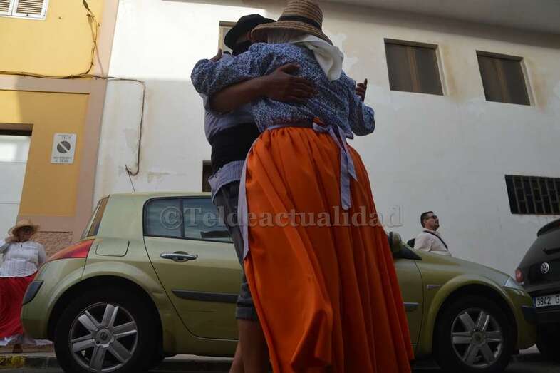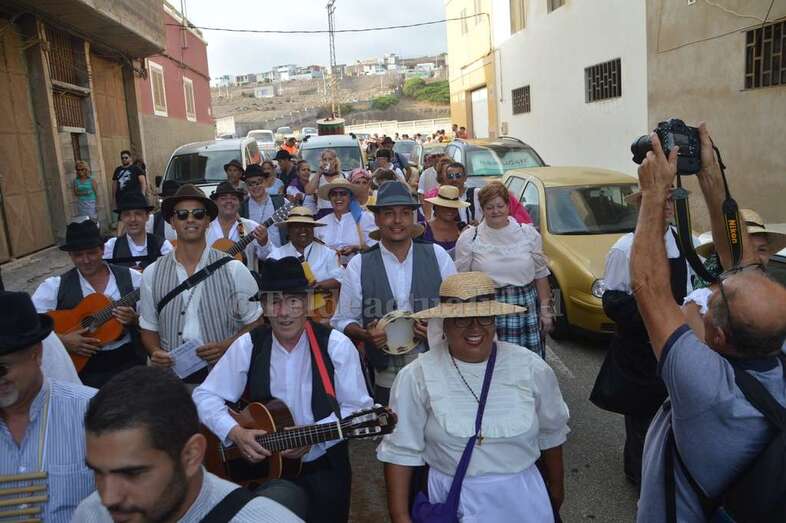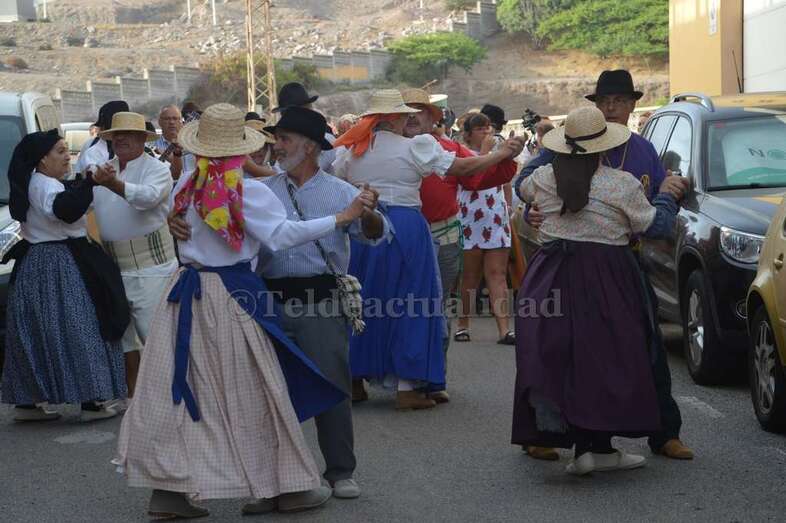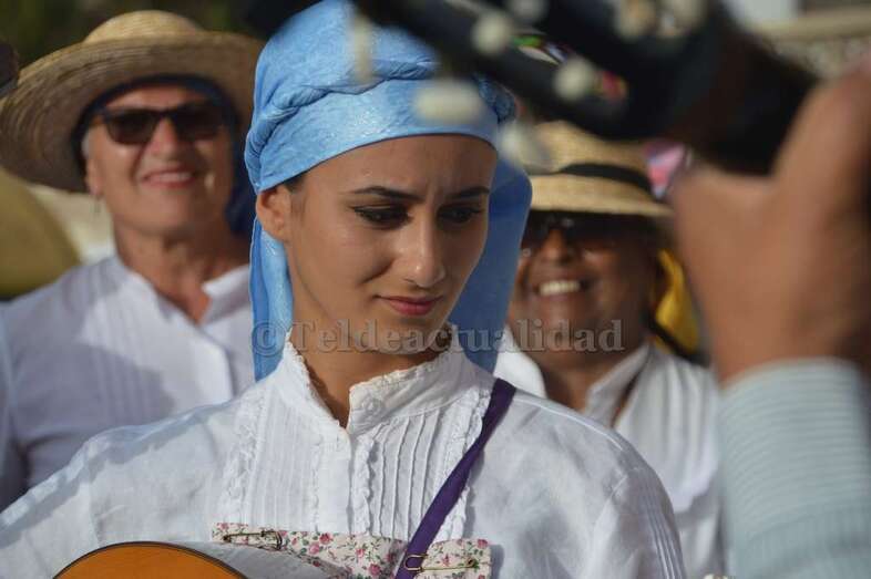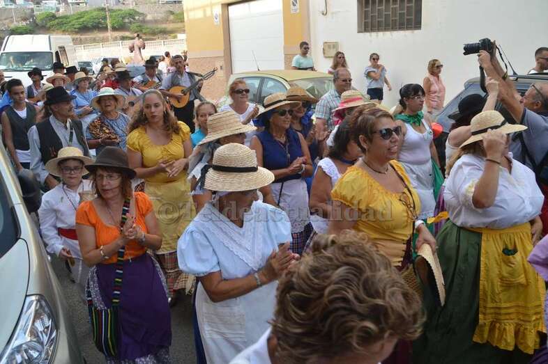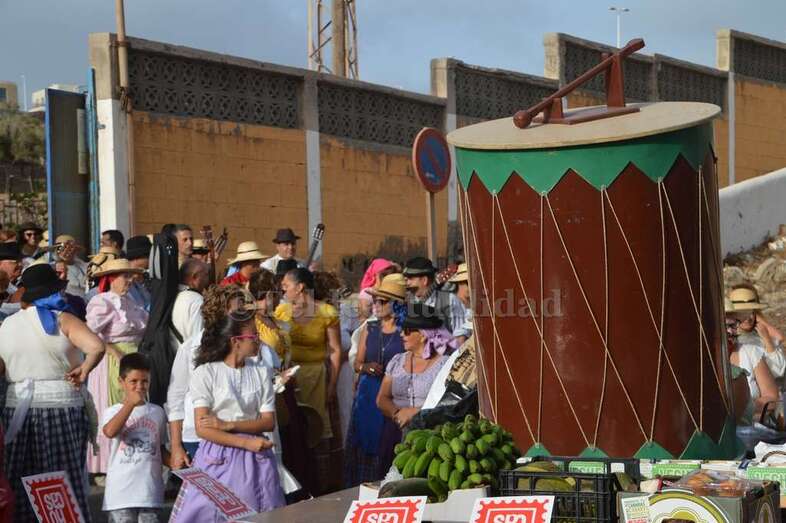 Tres carretas, con el acompañamiento de tres grupos musicales de la Escuela Municipal de Folclore, aportaron color y bullicio a la alegre comitiva que partió del entorno del campo de fútbol de Melenara pasadas las 19.00 horas y que concluyó hora y media después con la ofrenda y un baile de taifas en la plaza de Clavellinas.
