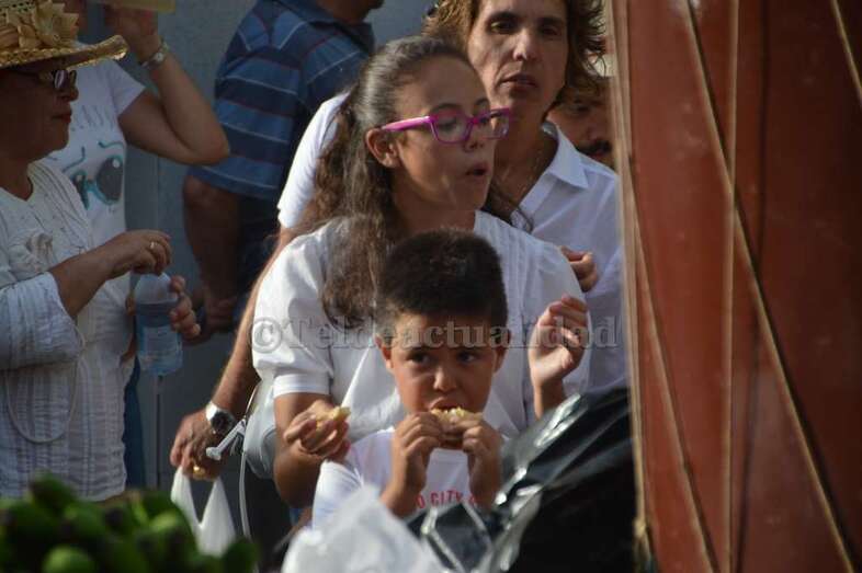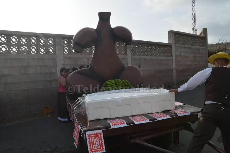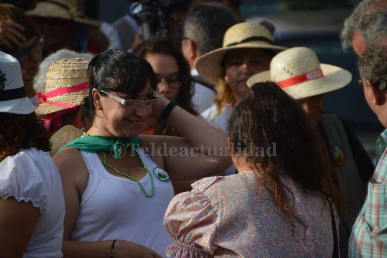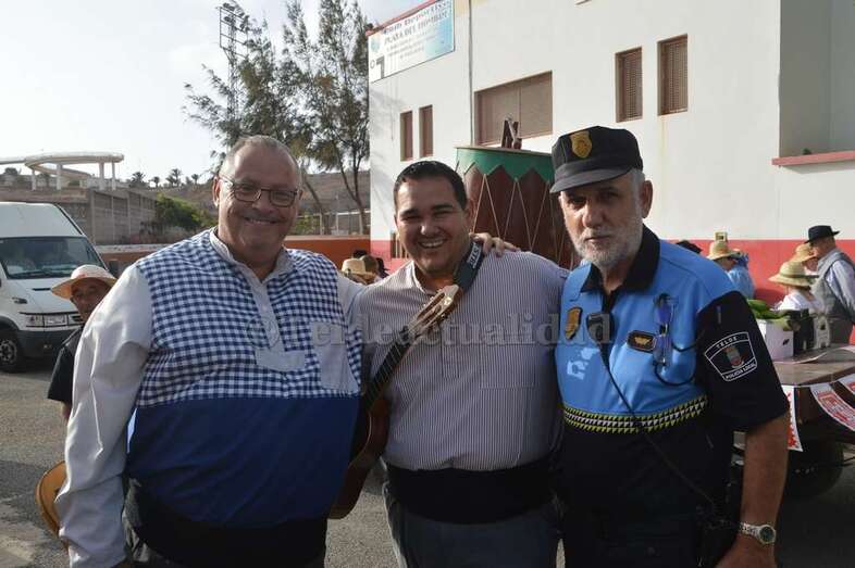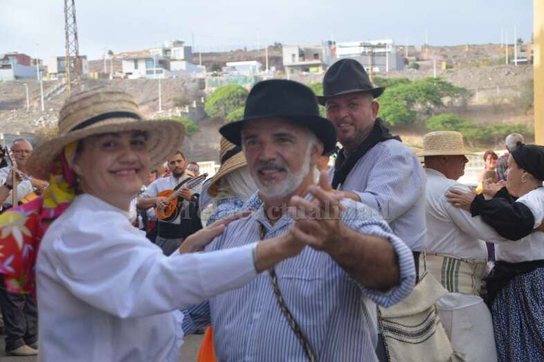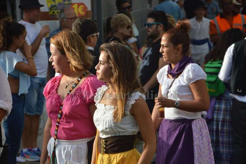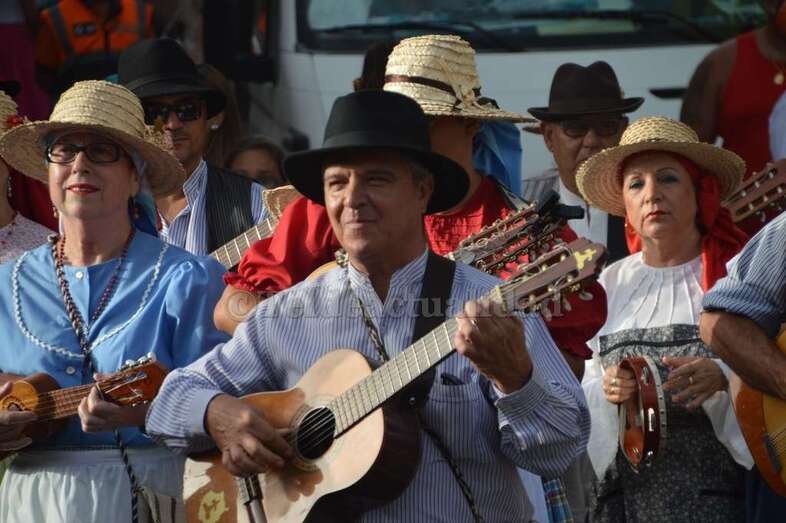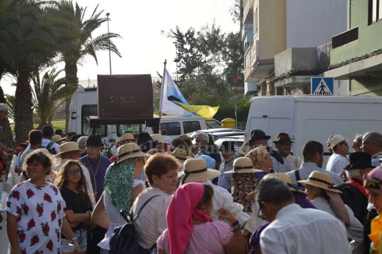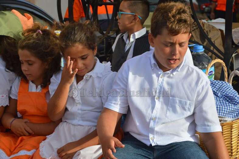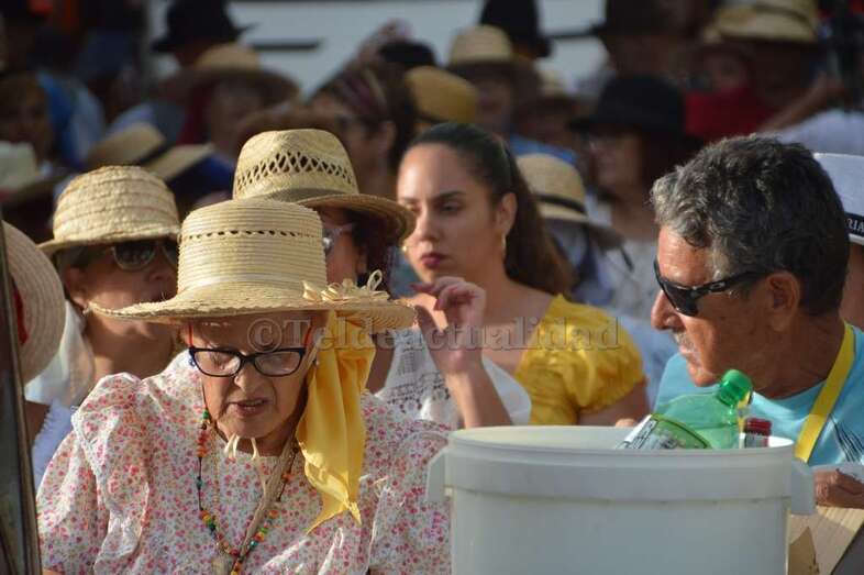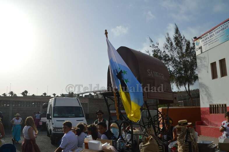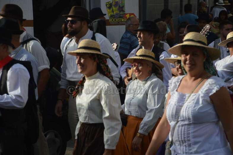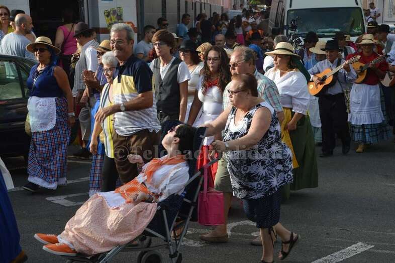 Tres carretas, con el acompañamiento de tres grupos musicales de la Escuela Municipal de Folclore, aportaron color y bullicio a la alegre comitiva que partió del entorno del campo de fútbol de Melenara pasadas las 19.00 horas y que concluyó hora y media después con la ofrenda y un baile de taifas en la plaza de Clavellinas.