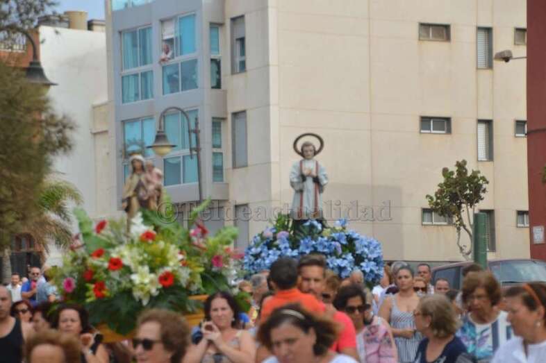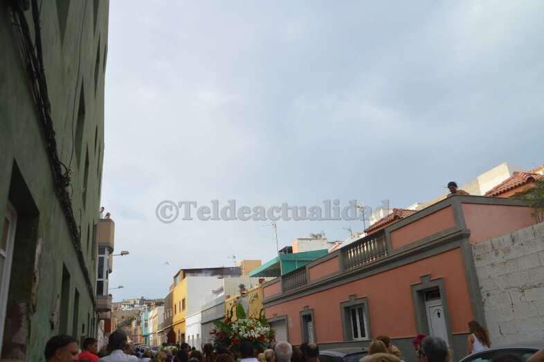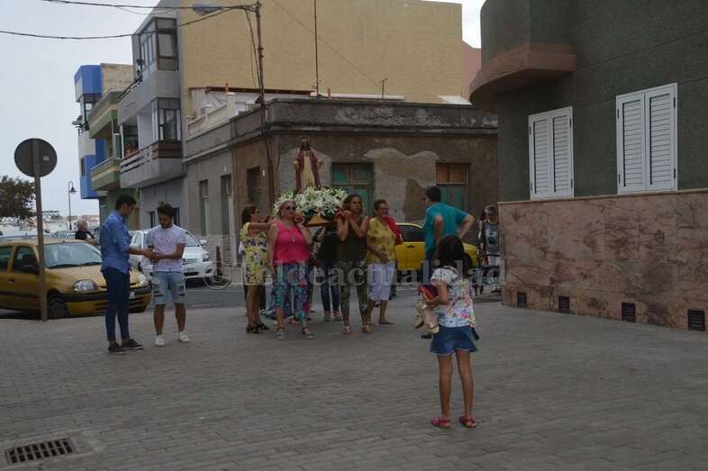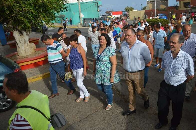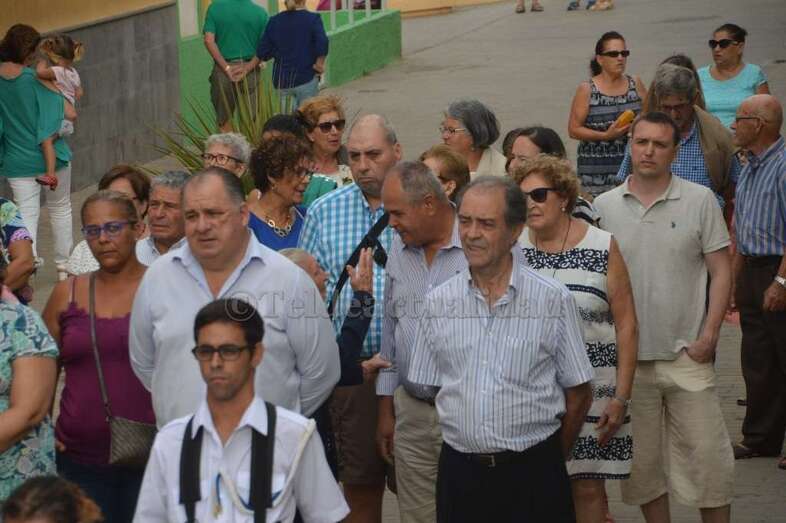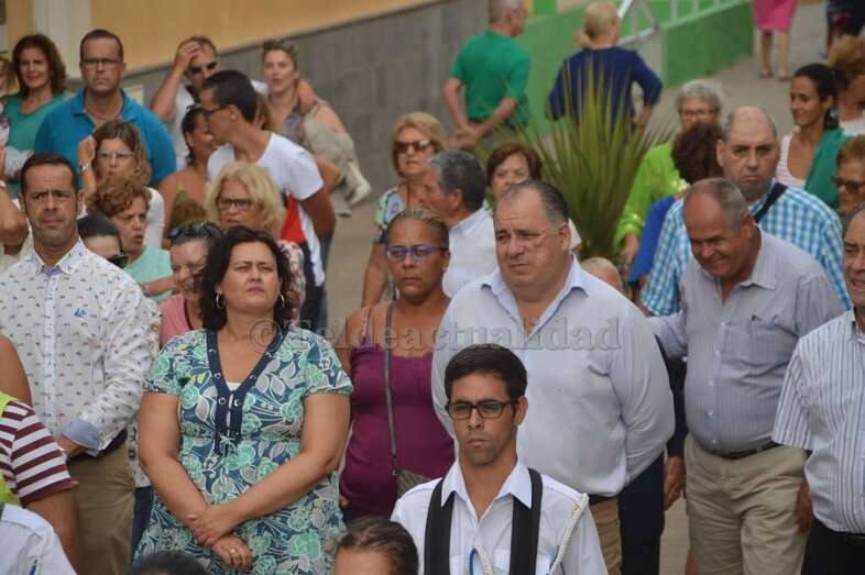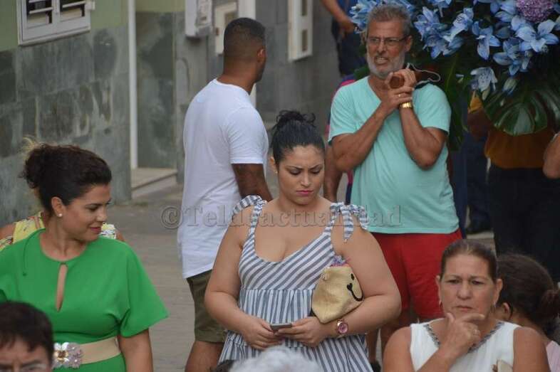Salvo este incidente en el tramo final, el desfile religioso discurrió sin problemas. Se inició con los tronos portados a hombro por vecinas de Melenara con su salida del templo de Clavellinas pasadas las 18.00 horas. A la puerta del templo, las imágenes eran recibidas por la feligresía y por una representación de las autoridades municipales con la alcaldesa en funciones, Celeste López, al frente. También asistió la consejera insular Minerva Alonso.