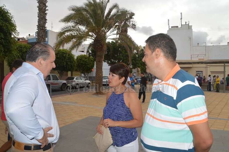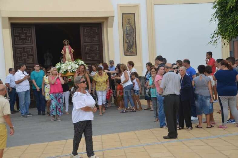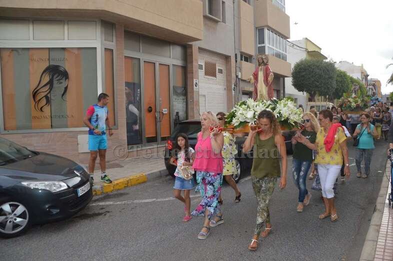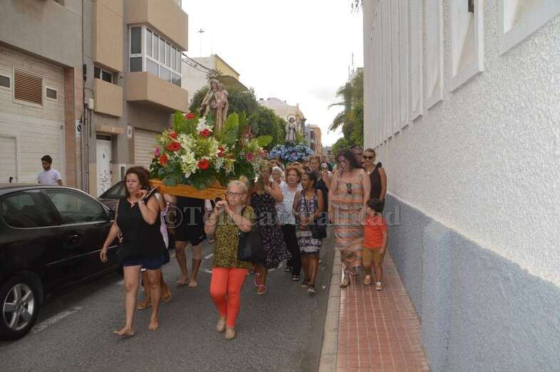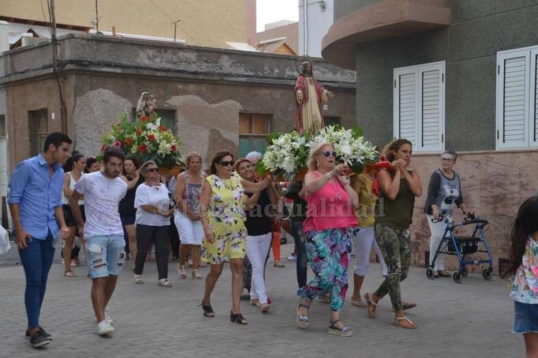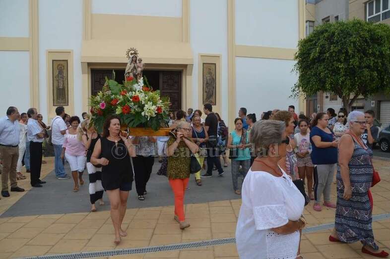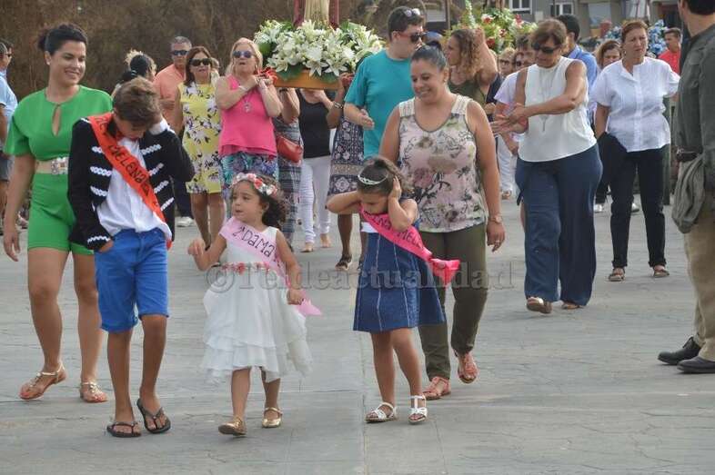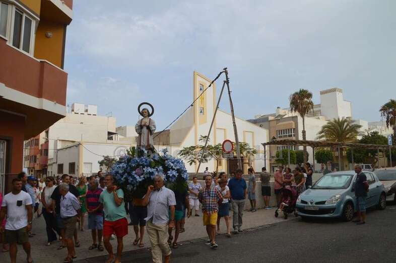 Salvo este incidente en el tramo final, el desfile religioso discurrió sin problemas. Se inició con los tronos portados a hombro por vecinas de Melenara con su salida del templo de Clavellinas pasadas las 18.00 horas. A la puerta del templo, las imágenes eran recibidas por la feligresía y por una representación de las autoridades municipales con la alcaldesa en funciones, Celeste López, al frente. También asistió la consejera insular Minerva Alonso.