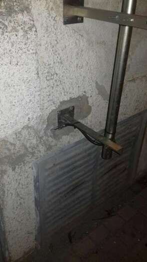 Los residentes alertan del peligro que supone esta antena en una zona de mucho tránsito, especialmente de escolares.