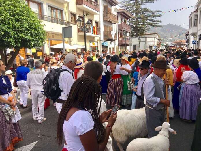 Fue una intensa jornada de expresión popular que dio comienzo a las 15.30 horas en la zona conocida como el Castañero Gordo, a la sombra generosa de ese árbol ubicado en las afueras del casco de Teror. Antes, en los recodos de la carretera general que da acceso al municipio, en garajes, solares y calles adyacentes, se engalanaron la veintena de carretas que participaron n en el evento, que este año cumplió su 66º aniversario.