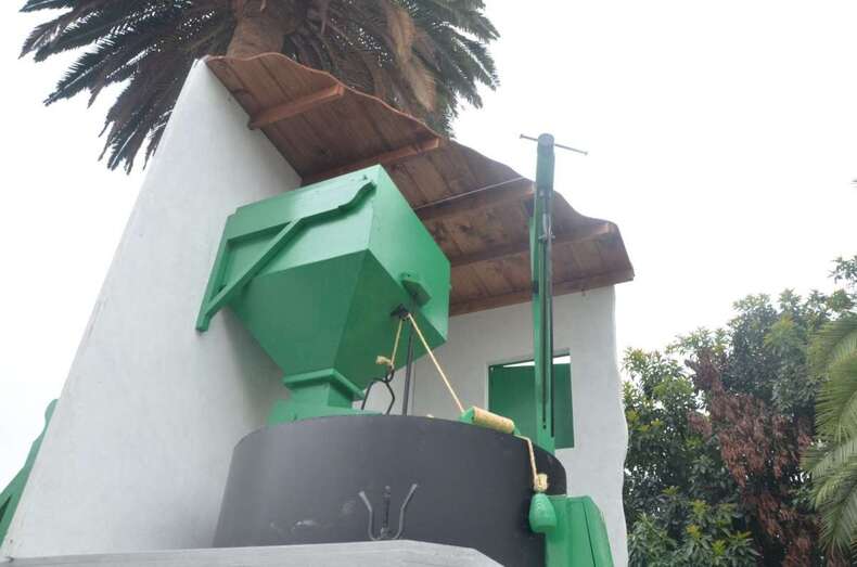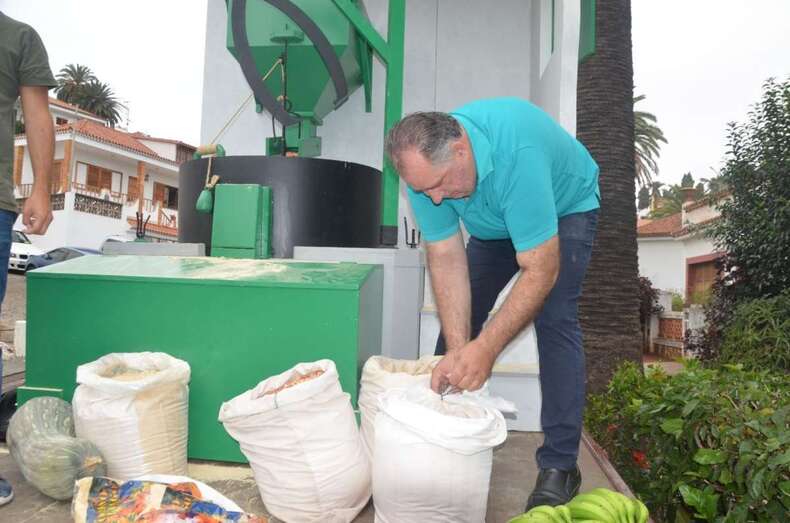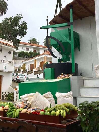 Este molino funcionó durante dos siglos hasta el año 2000. Dedicado a la molienda del gofio de millo, cebada y trigo, fue el último que cesó su actividad en Telde. Aún hoy sirve de museo para escolares y visitantes. Las personas que se acercaban hasta el molino propiedad de las familias Lozano y Peñate a moler el millo procedían de pagos cercanos como Tecén, Lomo Magullo o de otras zonas más alejadas, como Valsequillo, La Breña, Cazadores, La Pasadilla u otros barrios de Telde. El traslado de los cereales se hacía a lomos de mulas y burros. Como no podía ser de otra manera, se aprecia entre los productos ofrendados el gofio y una gran variedad de frutas y verduras cultivadas en las tierras teldenses.