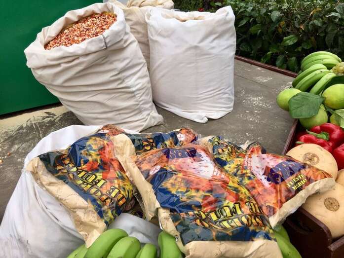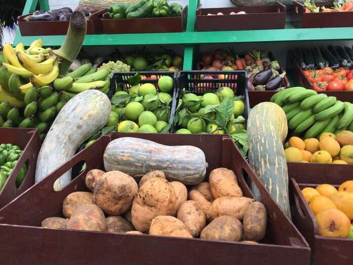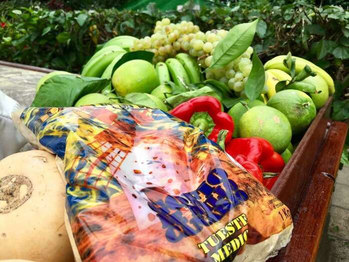 Frutas y verduras frescas, desde plátanos a pimientos, pescado, vino, queso o miel han sido algunos de los diversos productos donados con motivo de esta fiesta, que se distribuirán luego entre ciudadanos necesitados.