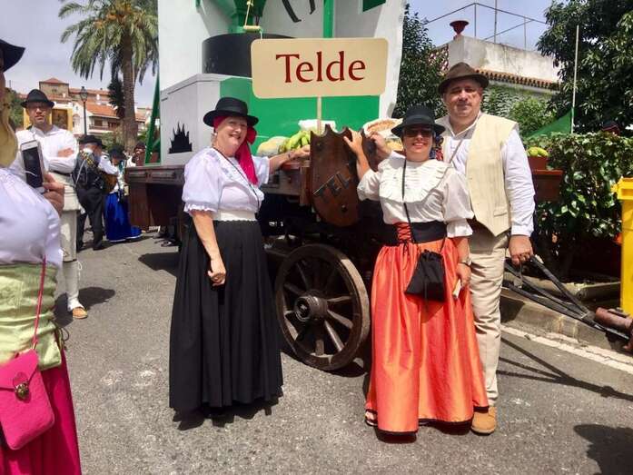 El grupo folclórico que acompañó a la carreta fue la Agrupación Folclórica Entre Amigos del Valle de Jinámar, que interpretó ante la imagen de la patrona unas Seguidillas de Gran Canaria.