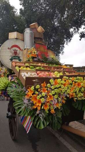 La carreta del Cabildo titulada ‘Alegría del campesino’, con diseño de Fernando Benítez, volvió a convertirse en una muestra de la variedad de productos y manufacturas que se impulsan desde su Consejería de Sector Primario y Soberanía Alimentaria, a través de la Granja Agrícola Experimental. En total, 850 kilos de fruta y verdura fresca colmaron la carreta institucional que, además, portó flores y plantas cultivadas, y a la que se sumó una representación de los productos ganadores de las principales catas insulares de 2017, en las categorías de vino, queso y miel.