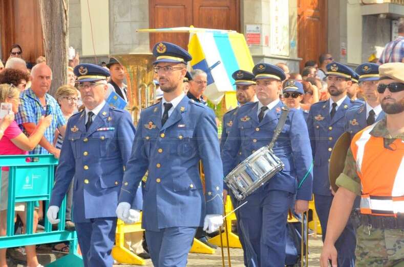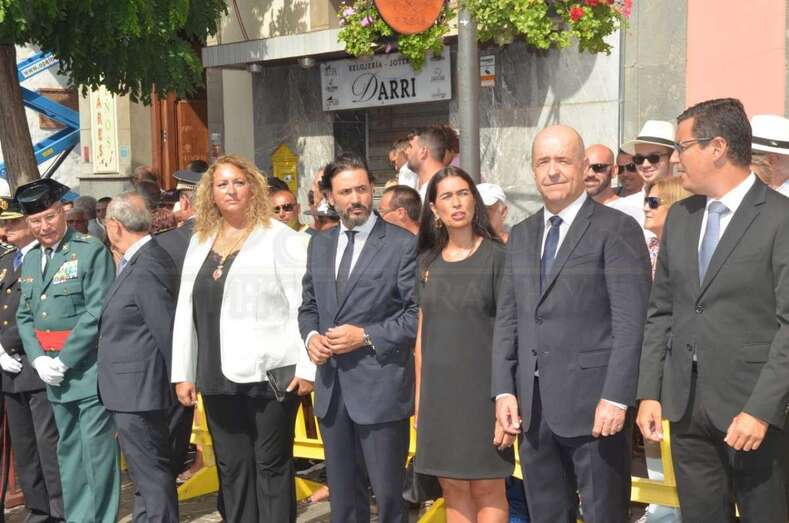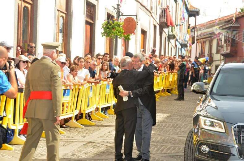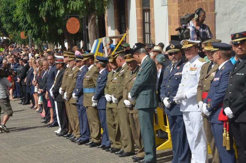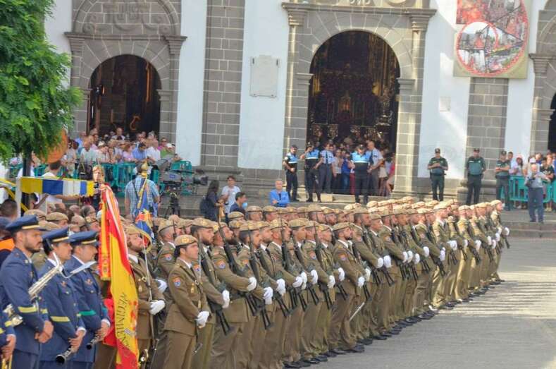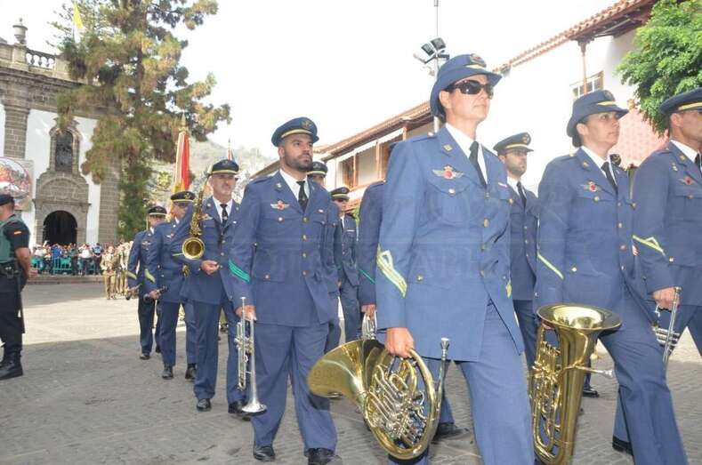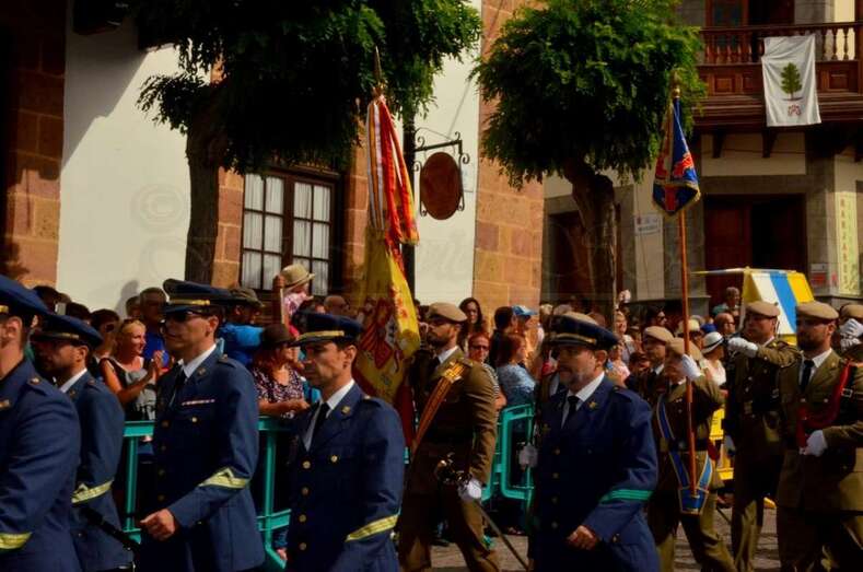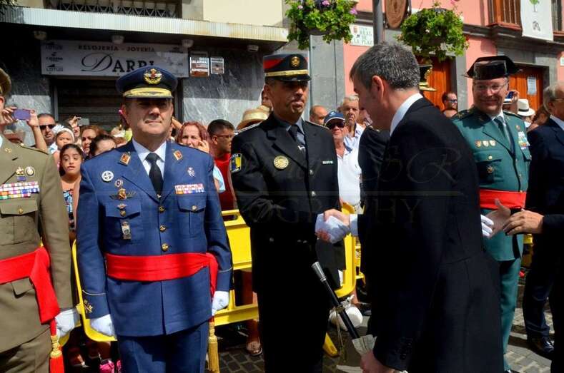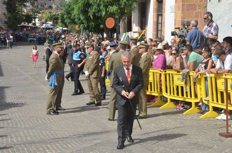 La solemne misa oficiada por el obispo de la Diócesis, Francisco Cases, ha estado precedida del acto oficial de recepción del representante de S.M. el Rey, a las 11.15 horas, el presidente del Gobierno de Canarias, Fernando Clavijo, y del desfile militar.