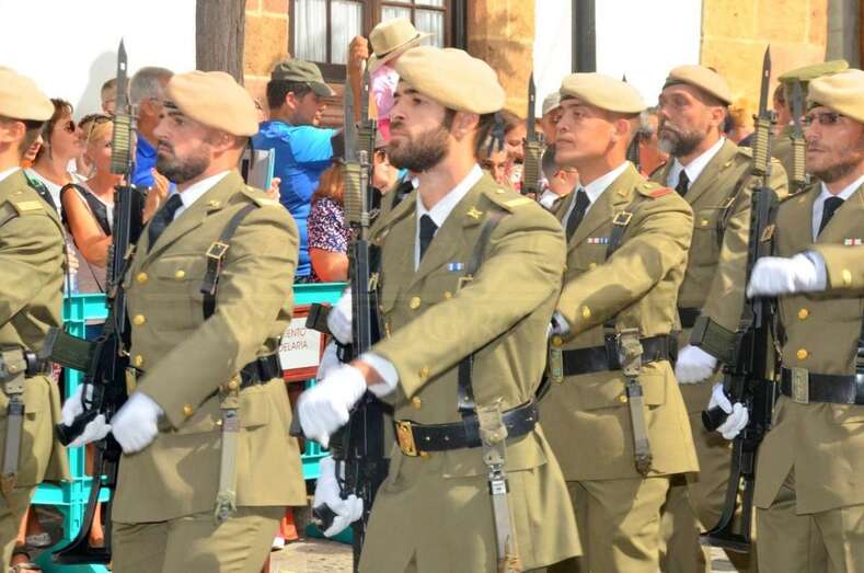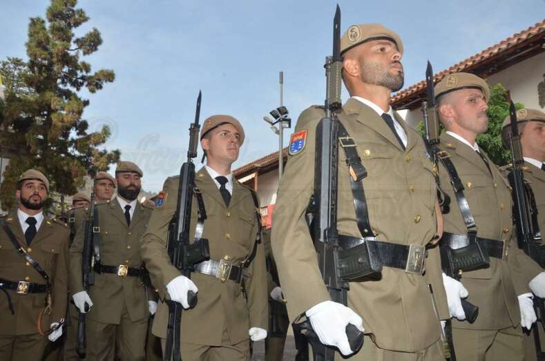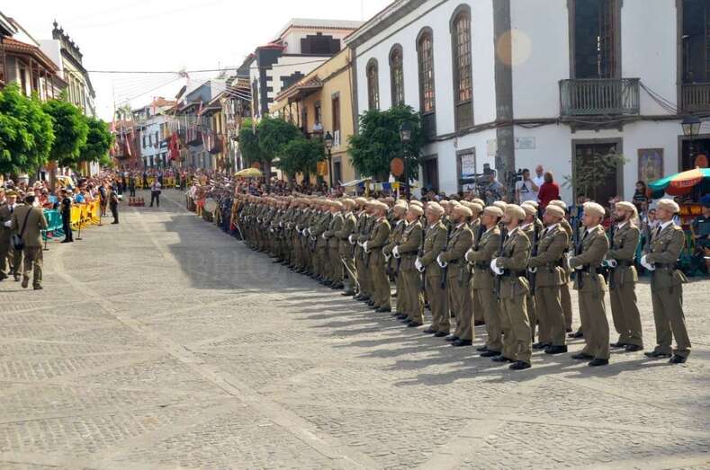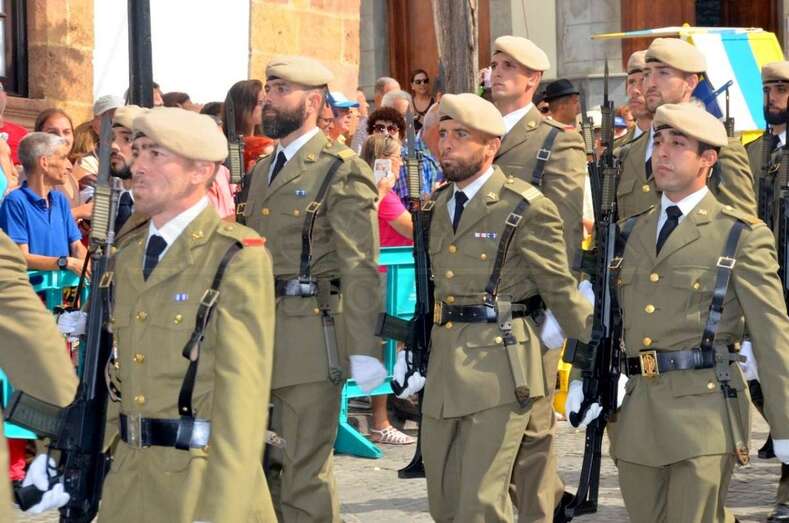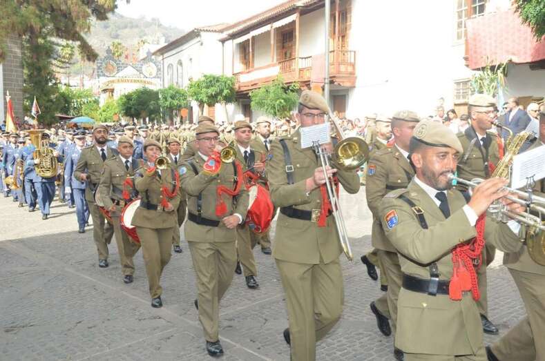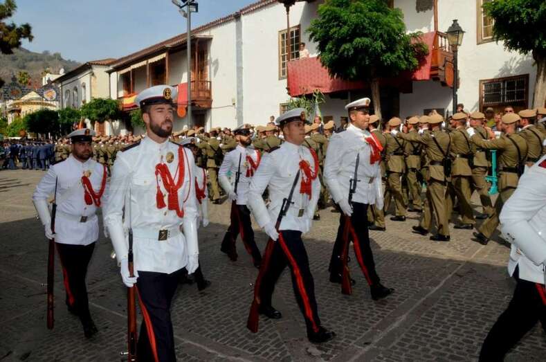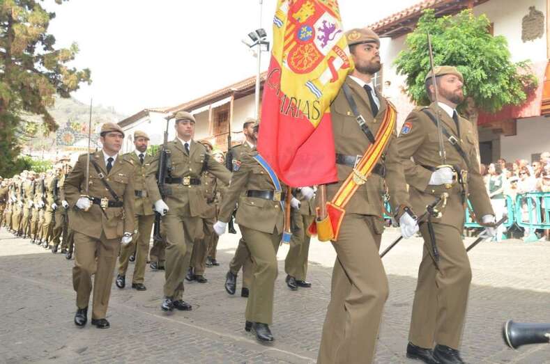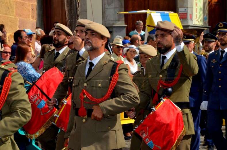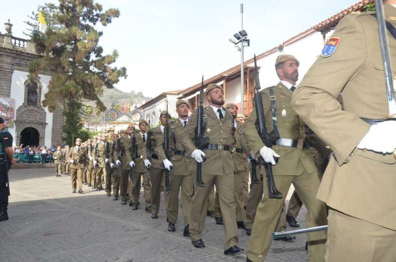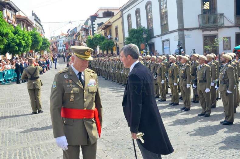 La solemne misa oficiada por el obispo de la Diócesis, Francisco Cases, ha estado precedida del acto oficial de recepción del representante de S.M. el Rey, a las 11.15 horas, el presidente del Gobierno de Canarias, Fernando Clavijo, y del desfile militar.