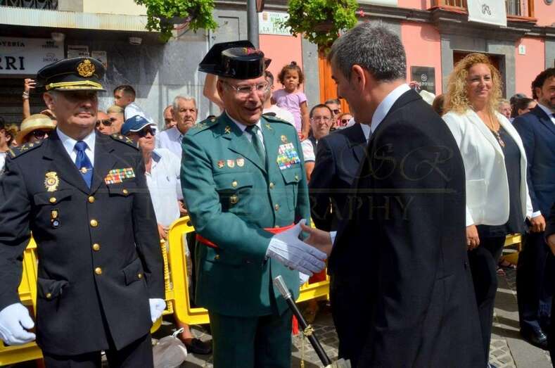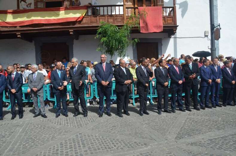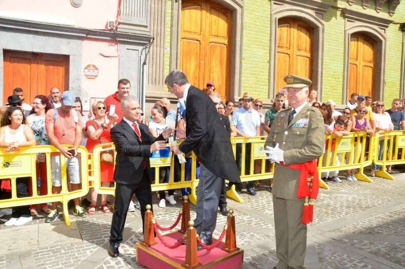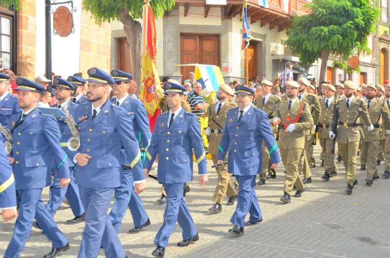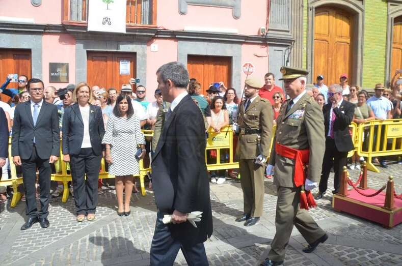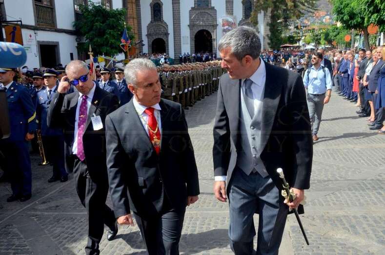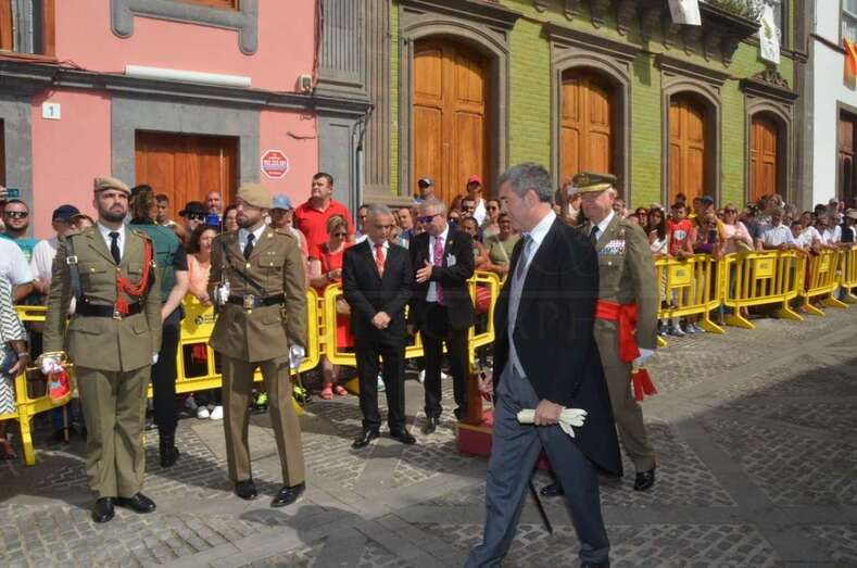 Clavijo, el presidente del Cabildo de Gran Canaria, Antonio Morales, y las principales autoridades de las islas han asistido al desfile militar, así como a la misa celebrada en la Basílica de Nuestra Señora del Pino- cuya homilía ha ofrecido el obispo de la Diócesis de Canarias, Francisco Cases-, y a la posterior procesión.