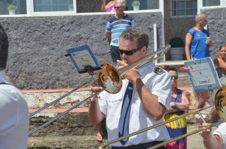 Al finalizar el desfile religioso, el cantautor teldense Nani Jiménez puso el broche de oro a las fiestas con una actuación musical.